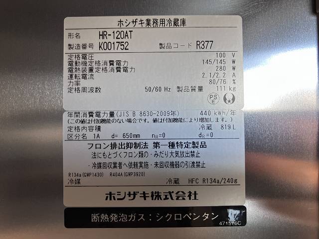 | 消費電力 | 冷却時:145/145W 霜取時:280/280W |