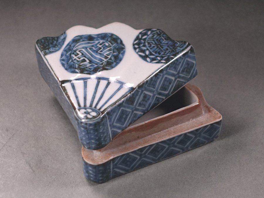 穢れのない落ち着いた色調の白磁に施された呉須発色はすこぶる鮮やかで、祥瑞文様を巧みに描き出して扇面の器としています。