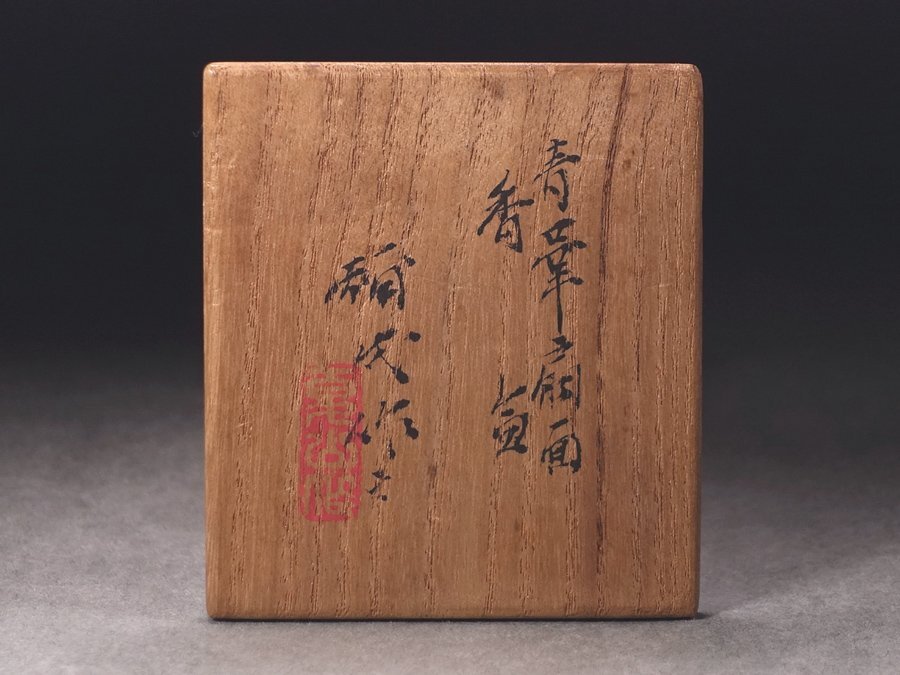 ∇花∇文化勲章受章作家【楠部彌弌(楠部弥弌)】作 唐物祥瑞写 青華扇面香合 共箱付