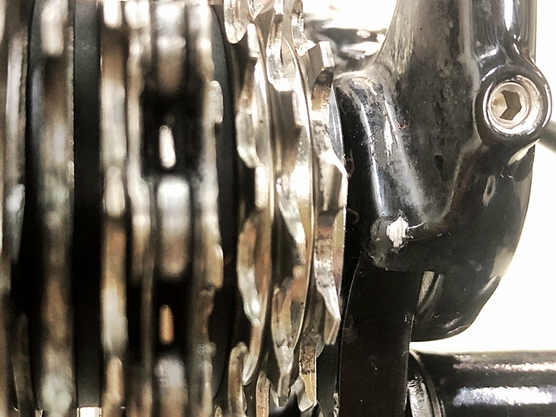 フレーム、その他外観:右フレームエンド内側に若干のチェーン落ちキズがあります。左右チェーンステー、左フロントフォーク、クランク、リアディレイラー、STIレバー、サドルにキズがあります。