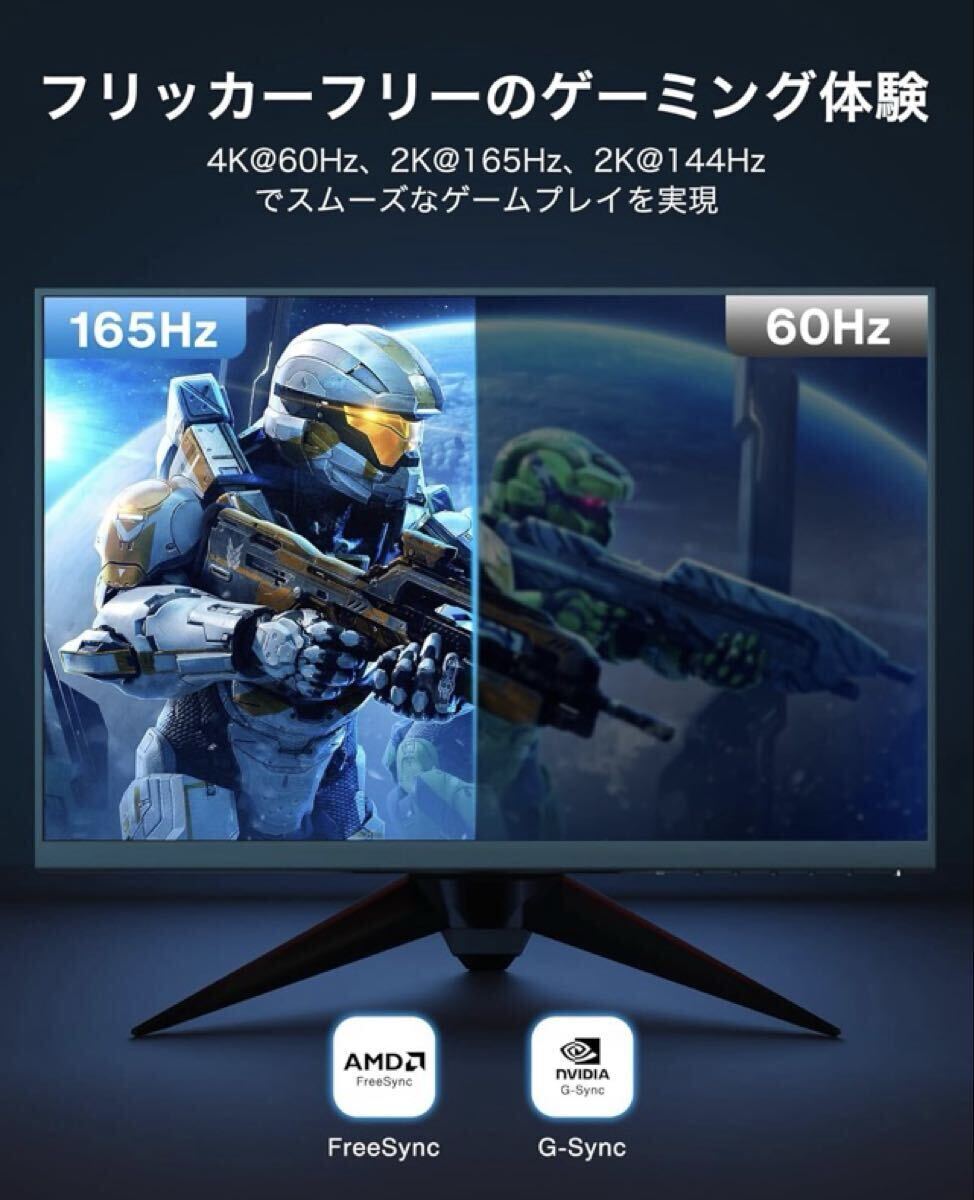 ◆ ご注意:144Hz(以上)の出力、4K60P、HDRおよび上記の機能は接続機器の両方が対応することが必要です。●表示可能な解像度とリフレッシュレートはご使用された機器の規格に準じます。●お使いの機器のコネクタ形状と合っているか必ずご確認の上ご購入をお願いします。