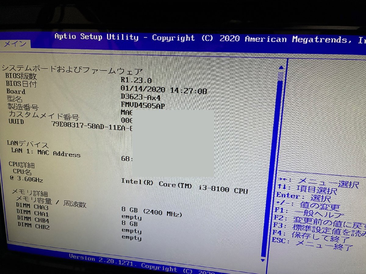 | ご覧いただきありがとうございます。 こちらは、富士通 ESPRIMO D588/CX デスクトップパソコンの出品です。 通電確認、BIOS起動確認のみ実施しており、OS起動などの動作は未確認のため「ジャンク品」として出品しております。修理・パーツ取り用途におすすめです。 【主なスペック】 型番:FMUD4505AР(ESPRIMO D588/CX) CPU:Intel Core i3-8100 メモリ:8GB(2400MHz) ストレージ:なし(HDD非搭載) 【状態】 Eランク(ジャンク品)・通電確認、BIOS起動確認のみ実施済み ・全体的に外観は比較的良好です 【付属品・欠品】 ・なし(電源ケーブル欠品) ※電源ケーブルが必要な場合は無料でお付けいたします。購入前にお申し付けください。 【注意事項】 ・動作保証のないジャンク品としての出品です ・返品、交換、保証対応はできません ・修理・パーツ取り・教材用などにご利用ください