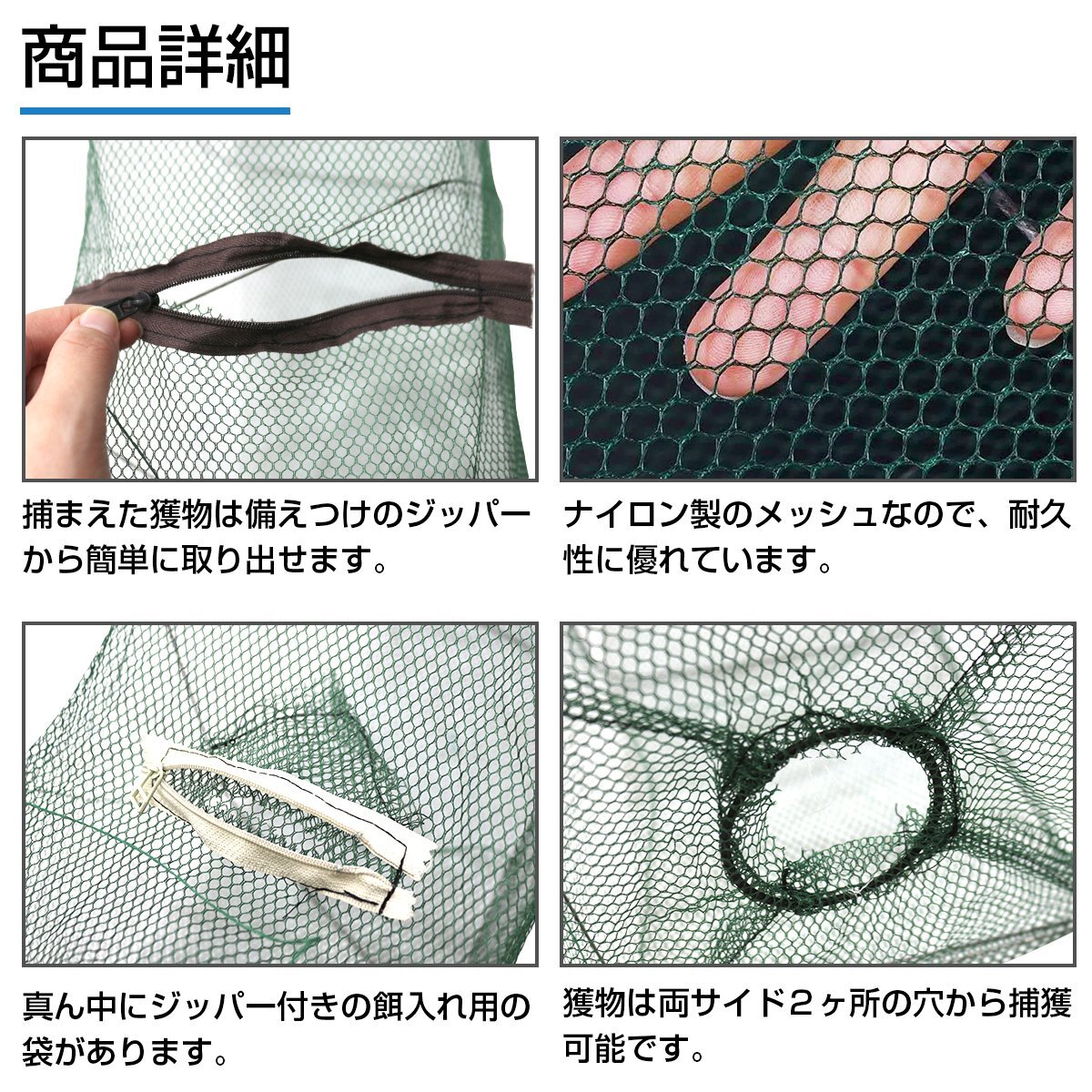 コンパクト収納 25×25×54cm 捕獲網 仕掛け網 かご網 軽量 折り畳み式 トラップネット 魚捕り エビ捕り 小魚 魚取り 川遊び