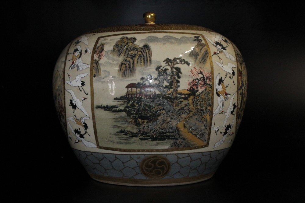 | 商品名 | 【江】薩摩焼 金襴手 鶴群窓抜風景文壺 直径34㎝×高さ31.5㎝ 古美術品(玉龍山花瓶花入花生飾壺)AXZ263 JTPBdkii JTDBvvxj |