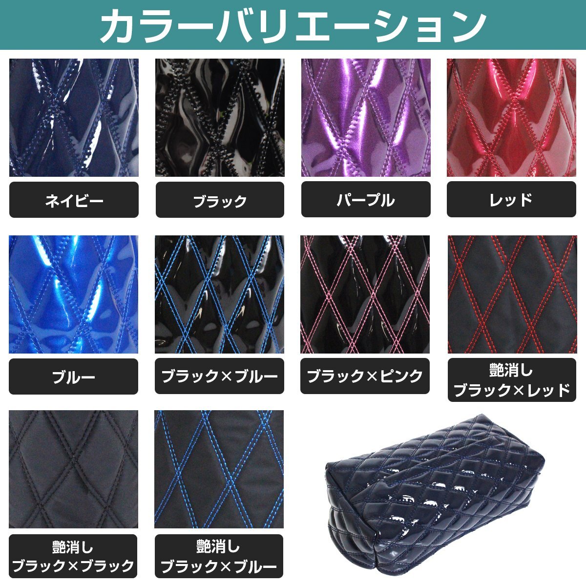 汎用 ティッシュケース ティッシュカバー 艶あり エナメル調 ダークブルー×ネイビー ダブルステッチ ダイヤカット キルティング デコトラ