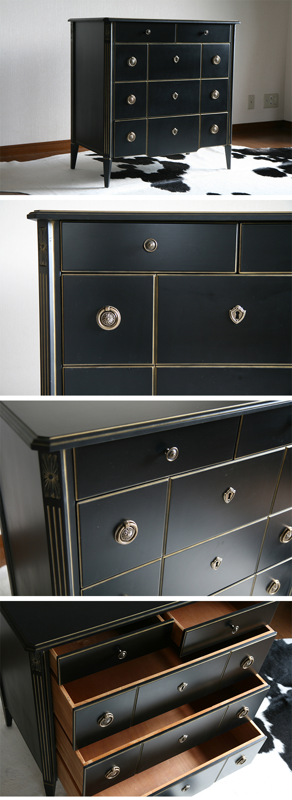 | 商品名 | 送料無料 ロココ調 4段チェスト ブラック 約W90×約D50×約H90(cm) 収納 木製 ロココ アンティーク クラシック レトロ ヨーロピアン エレガント インテリア キャビネット サイドチェスト サイドボード 箪笥 タンス 完成品 家具 寝室 リビング おしゃれ 黒 rococof115bk |