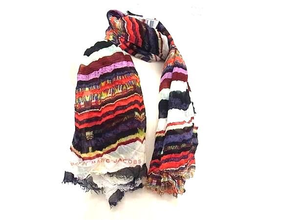 ■美品■ MARC BY MARC JACOBS マークバイマークジェイコブス フリンジ 総柄 大判 ショール ストール スカーフ マルチカラー DJ7567