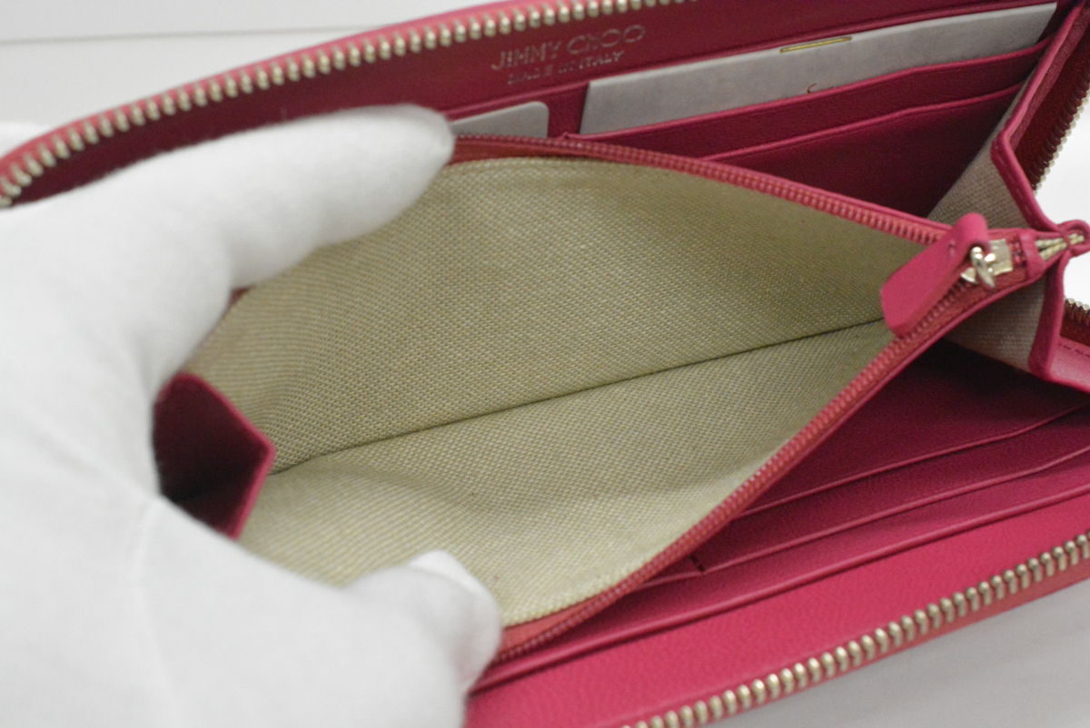 出品はジミーチュウ 長財布です。 ラウンドファスナー、色は落ち着いた赤系、 スタッズにクリスタルストーンがあしらわれています。 大きさは幅19~20cm、高さ11cm、 カードは8枚収納できます。 状態は中古です。金具部分に若干のスリキズが ございますが、全体としては使用感が少なく きれいな状態です。 付属品は布袋、紙箱(キズなど傷みあり)です。 ご入札前に在庫の確認をして頂ければ確実ですので、お気軽にご連絡ください。 ---〈必ずお読みください〉---※領収書の発行は行っておりません。振込の取引明細や代引伝票の控えをご利用ください。 ※新品・未使用品は、買取品の為メーカー保証が受けられるかは不明です(メーカーの判断となります)。 ※値段の交渉についてのご質問にはお答えいたしません。 ※商品の使用方法、取扱いについては当店では分からないため、メーカーに直接お問合せください。 ※営業時間外(10時~19時以外)のご質問・お問合せについては対応できません(木曜日店休) |