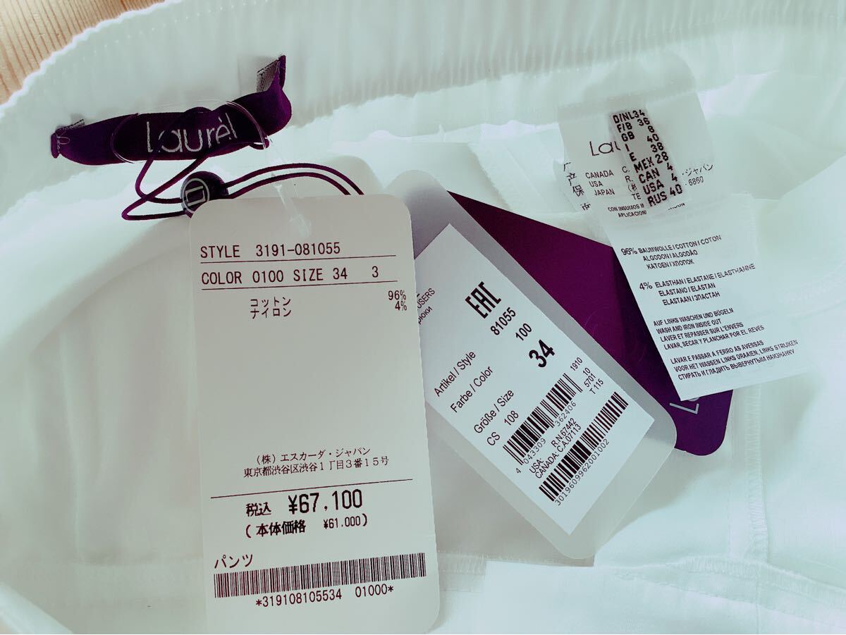 訳あり未使用品【Laurel】ローレル ESCADA エスカーダ ホワイト パンツ スラックス 34サイズ 定価67100円 | |||