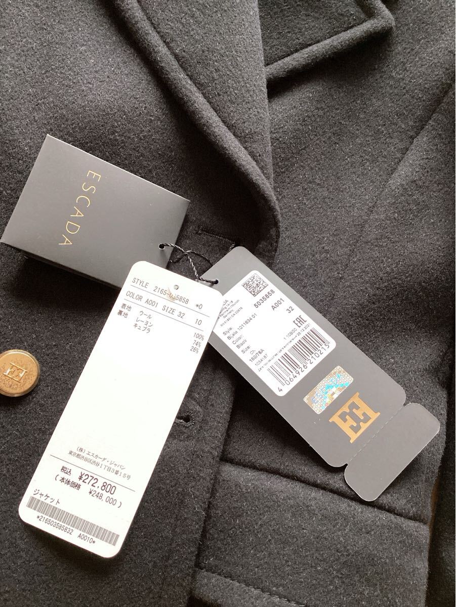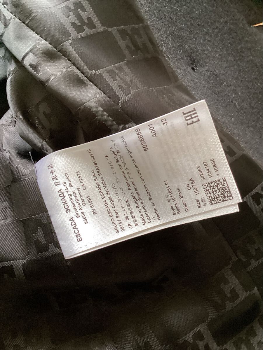 訳あり未使用品【ESCADA】エスカーダ ブラック ウール ジャケット ピーコート 32サイズ 定価272800円 | |||