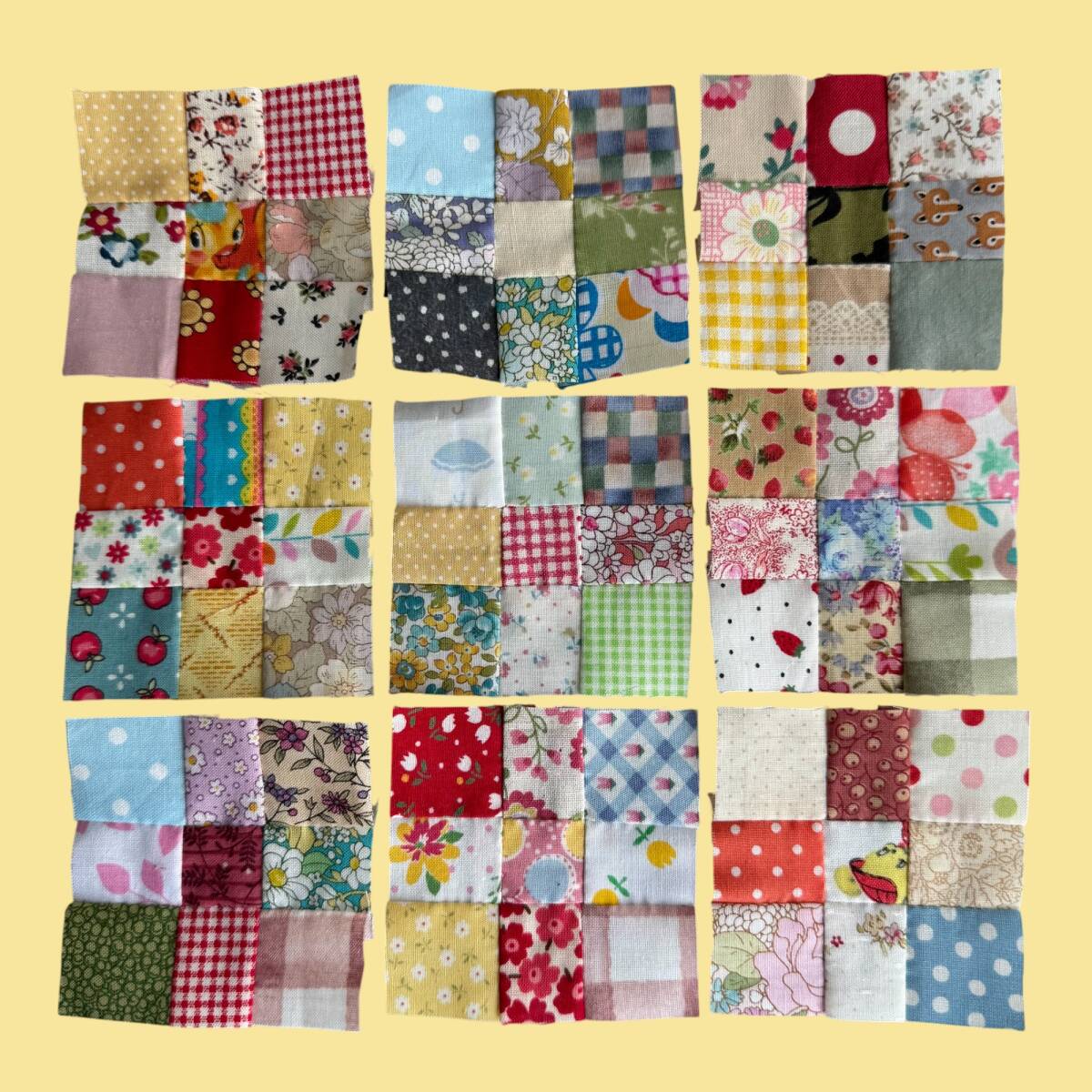 2465 パッチワーク キルトトップ 2cm角 ナインパッチ 9枚セット ハギレ 作りかけ