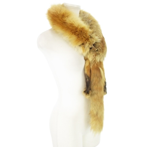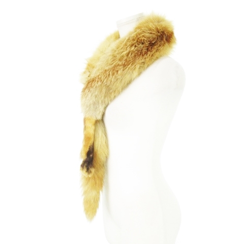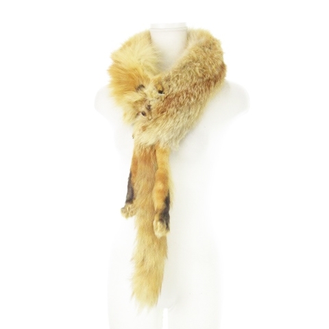 ノーブランド ファーティペット マフラー フォックス 毛皮 顔付き 足付き 茶 ブラウン /AH8 ■GY18 レディース