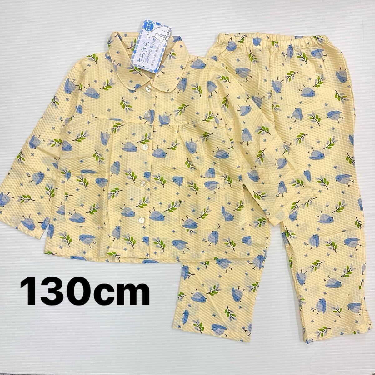 新品64078 サイズ130cm クリーム 小鳥プリント ガールズ長袖パジャマ さらさら快適素材 涼やかな着心地 春夏用 ルームウエア 女子キッズ