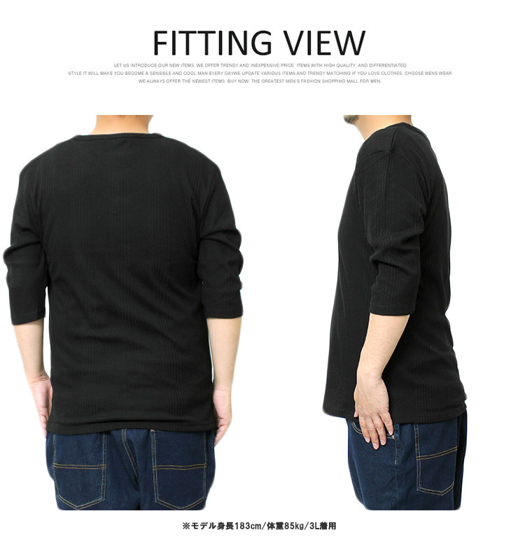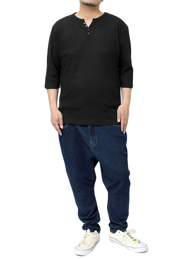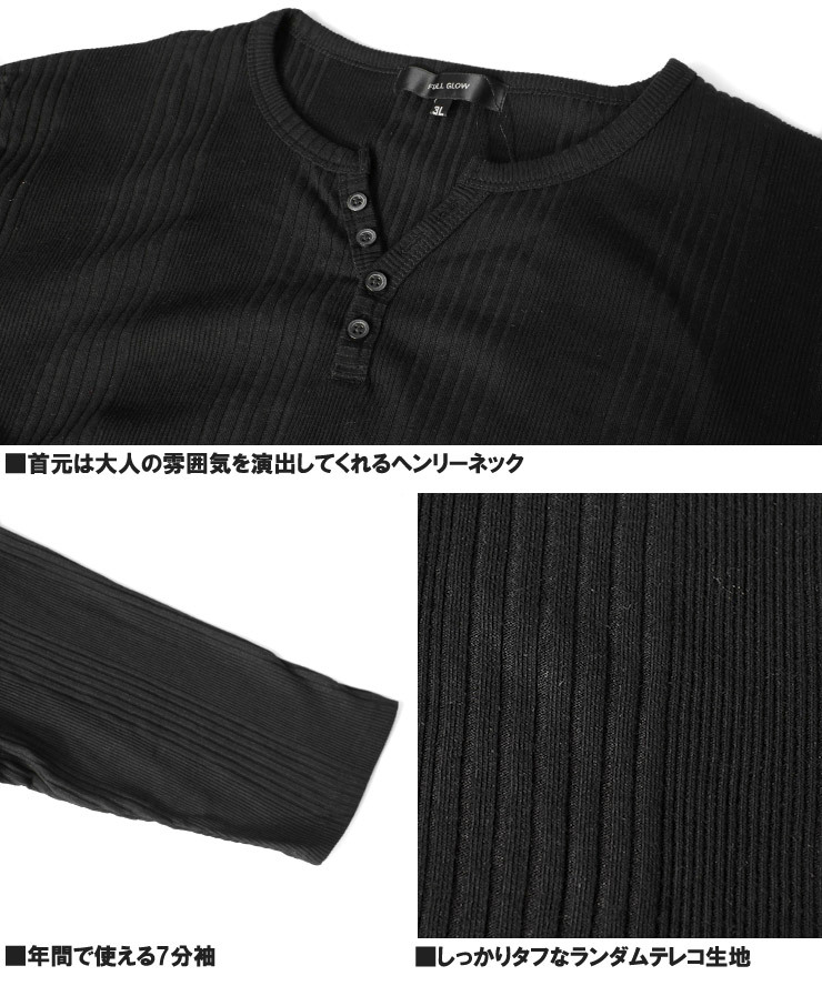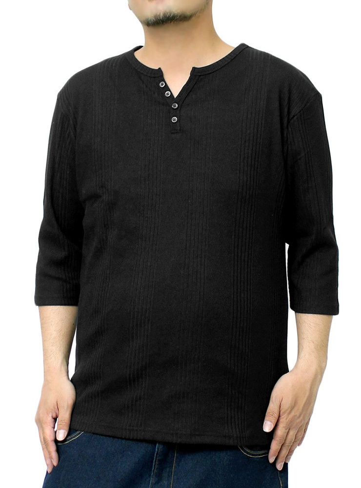 | 商品名 | 【新品】 4L ブラック 7分袖 Tシャツ メンズ 大きいサイズ ヘンリーネック 無地 ランダム テレコ素材 ストレッチ カットソー |