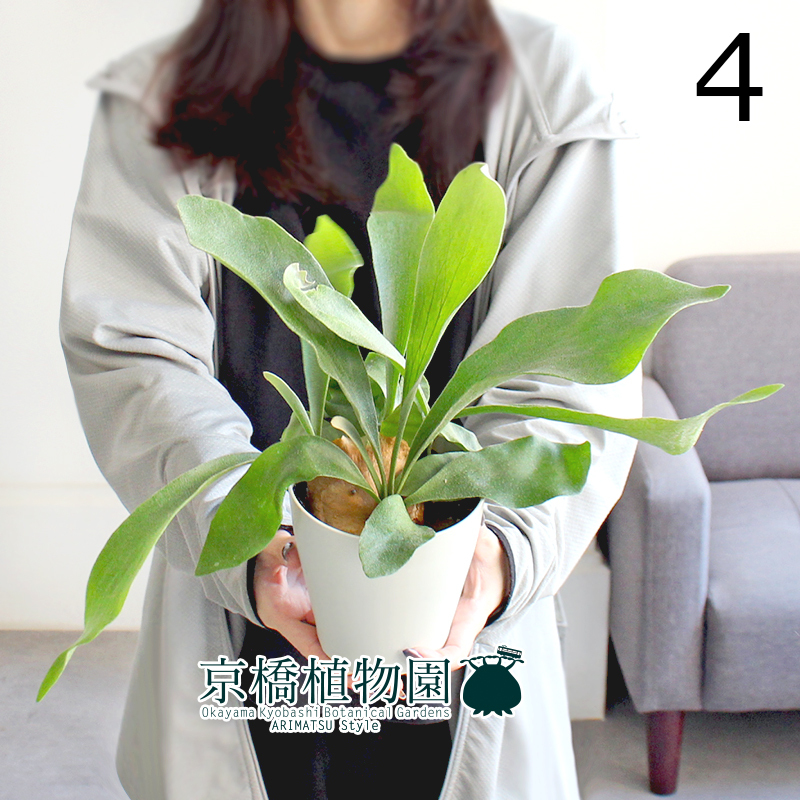 【現品】コウモリラン/ビカクシダ・ビフルカツム 4号 白鉢(4)Platycerium bifurcatum