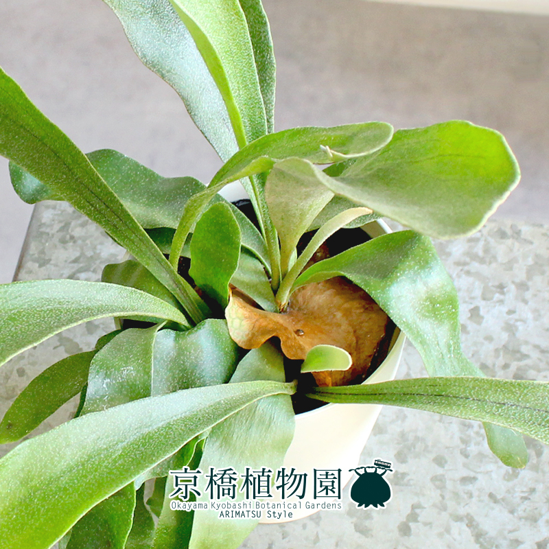 コウモリランとは着生シダの1種で、貯水機能を持つ皿状の葉によって少ない水と栄養でも成長します。