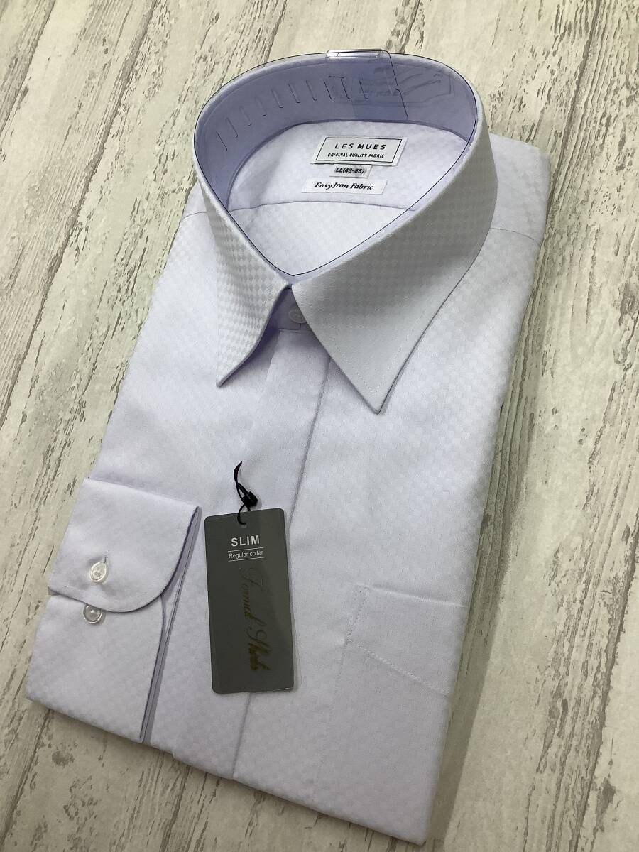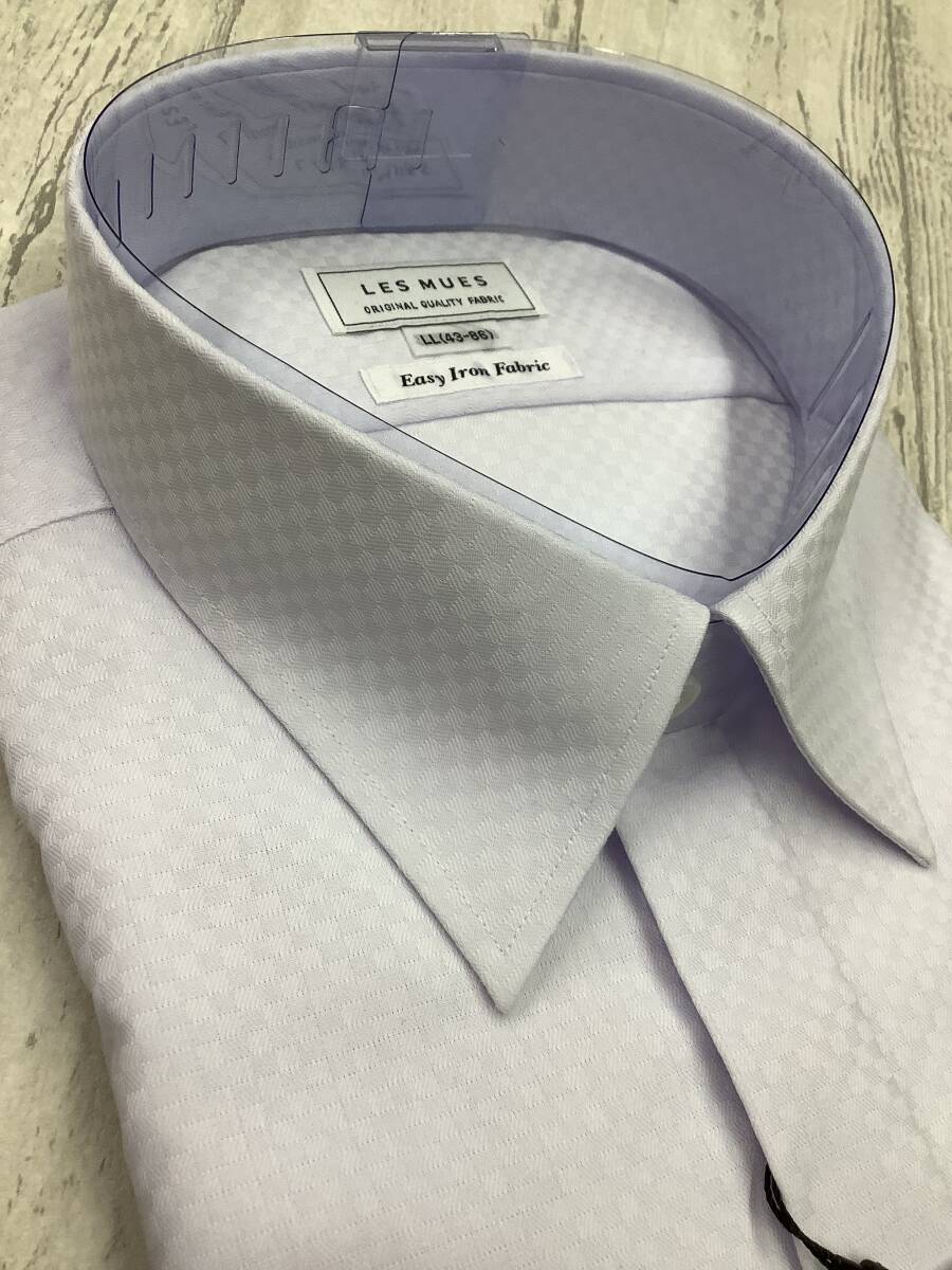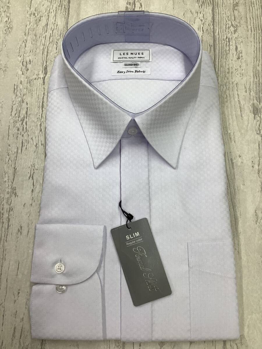 ★43-86★ LLサイズ 定価4,990円の品 スーパーストレッチ素材 ドレスシャツ★ノンアイロン ★薄ラベンダーチェック柄 ★比翼