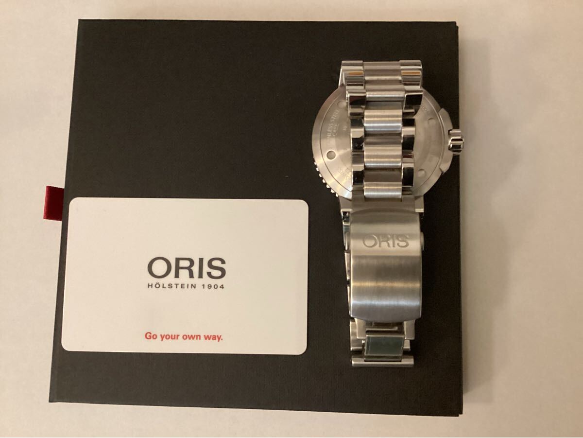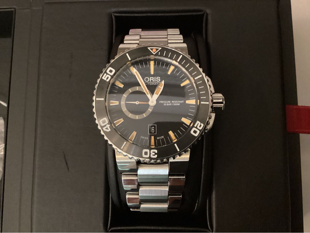 2021年に新品で購入した ORIS オリス アクイス スモールセコンド デイト 01 743 7673 4159-07 8 26 01PEB になります。