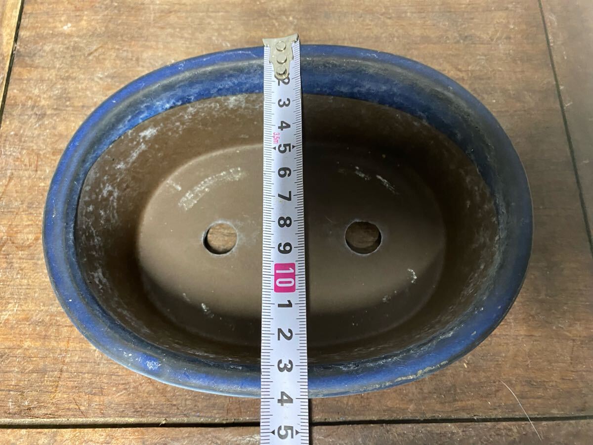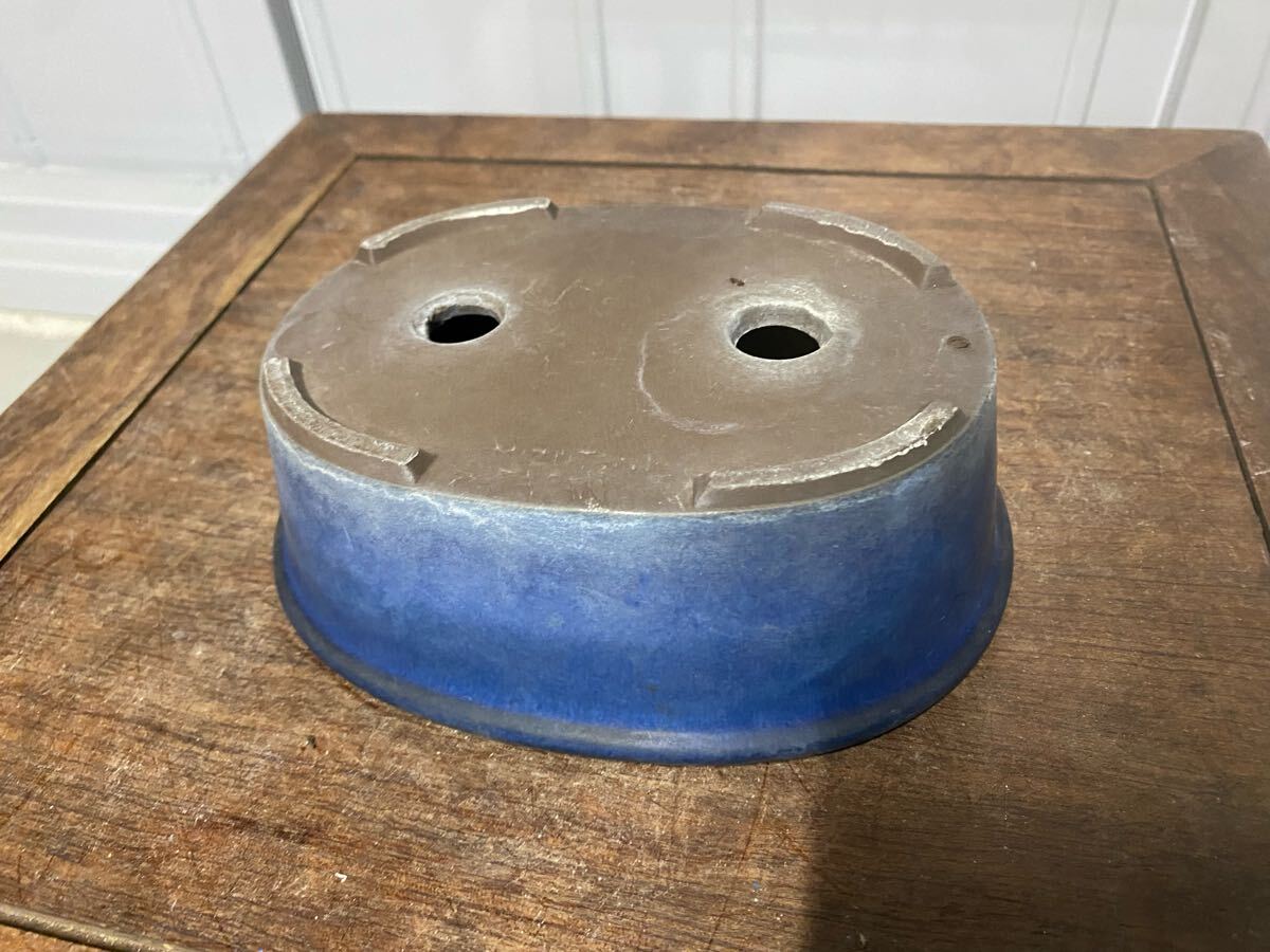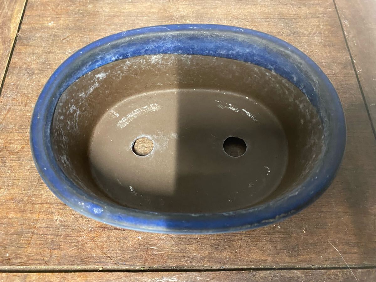 楕円で青色の小品盆栽鉢です。