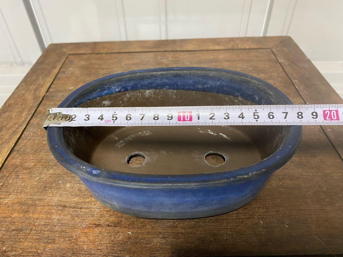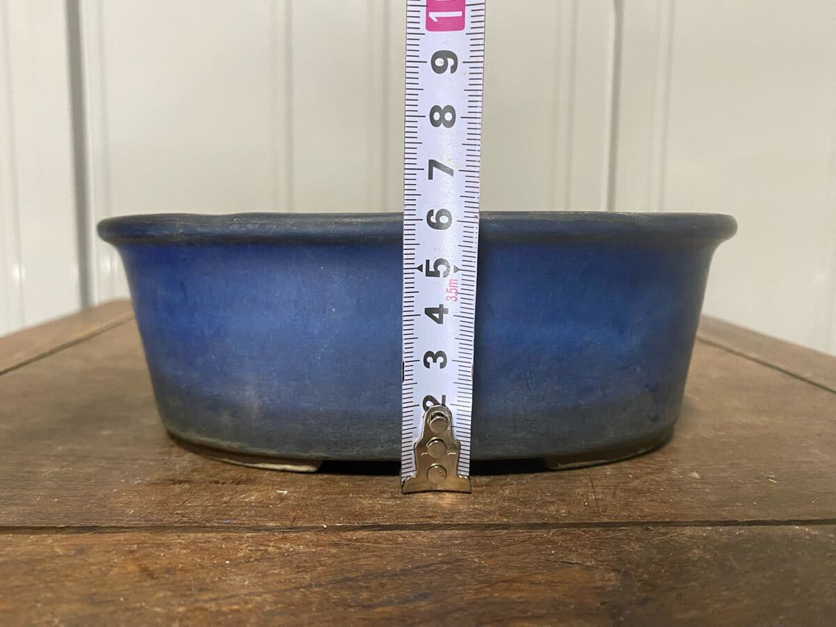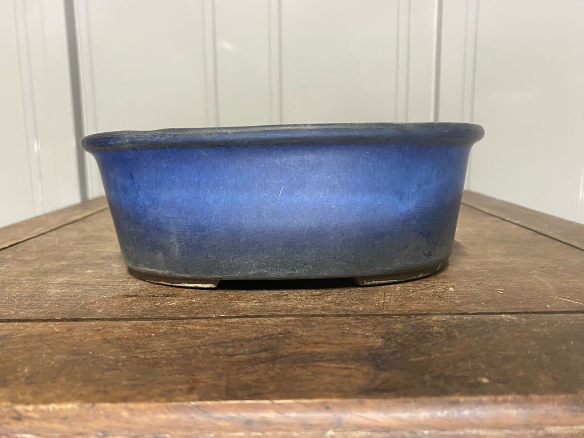 楕円で青色の小品盆栽鉢です。