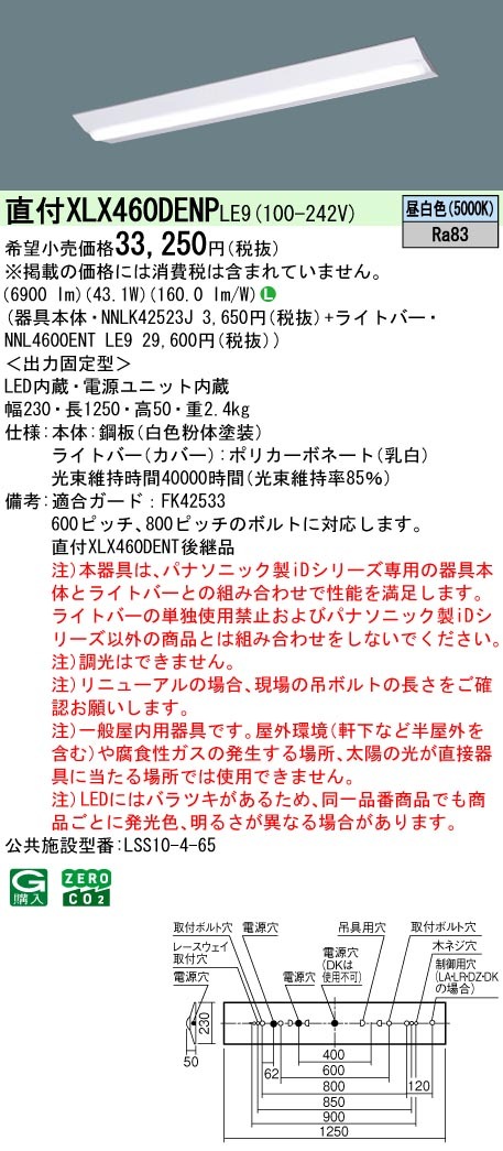パナソニック:XLX460DENP LE9 iDシリーズ 40形 幅230 一般形 昼白色 非調光 (6900lmタイプ)