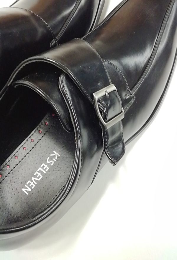 B品 メンズ ビジネスシューズ 26.5cm ブラック ドレスシューズ モードシューズ スリッポン 紳士靴 本革合皮コンビ スワールモカ 15174