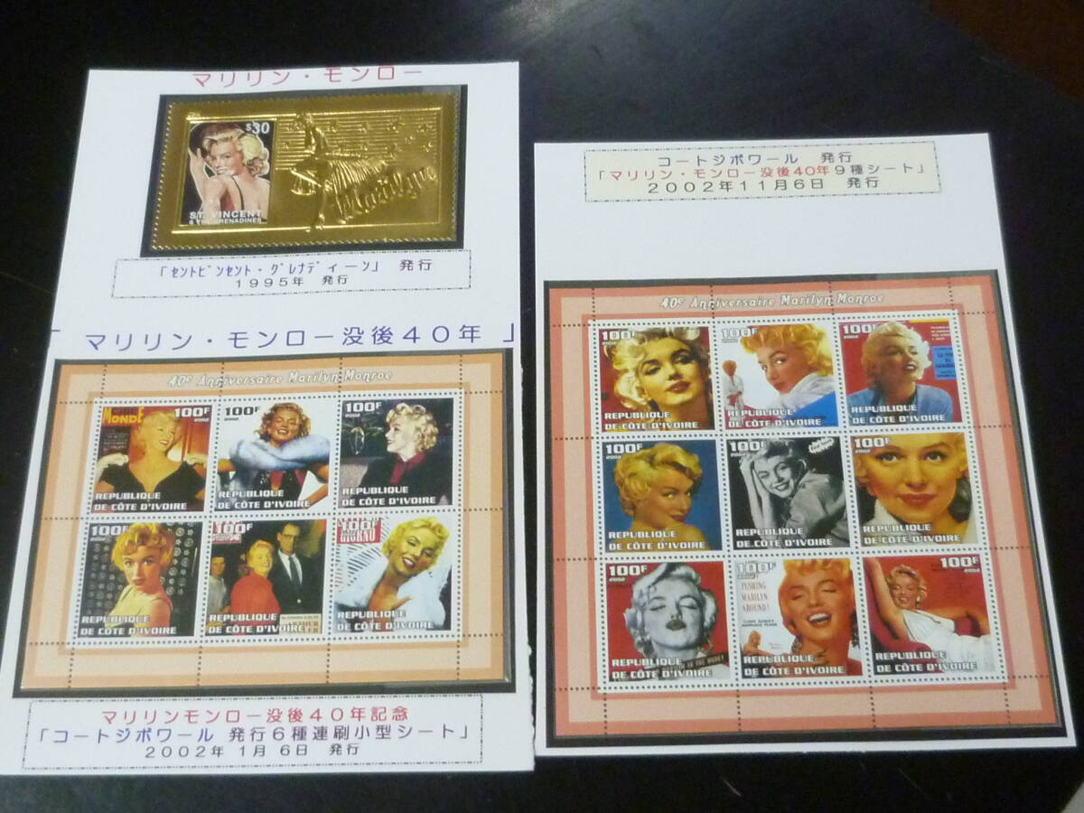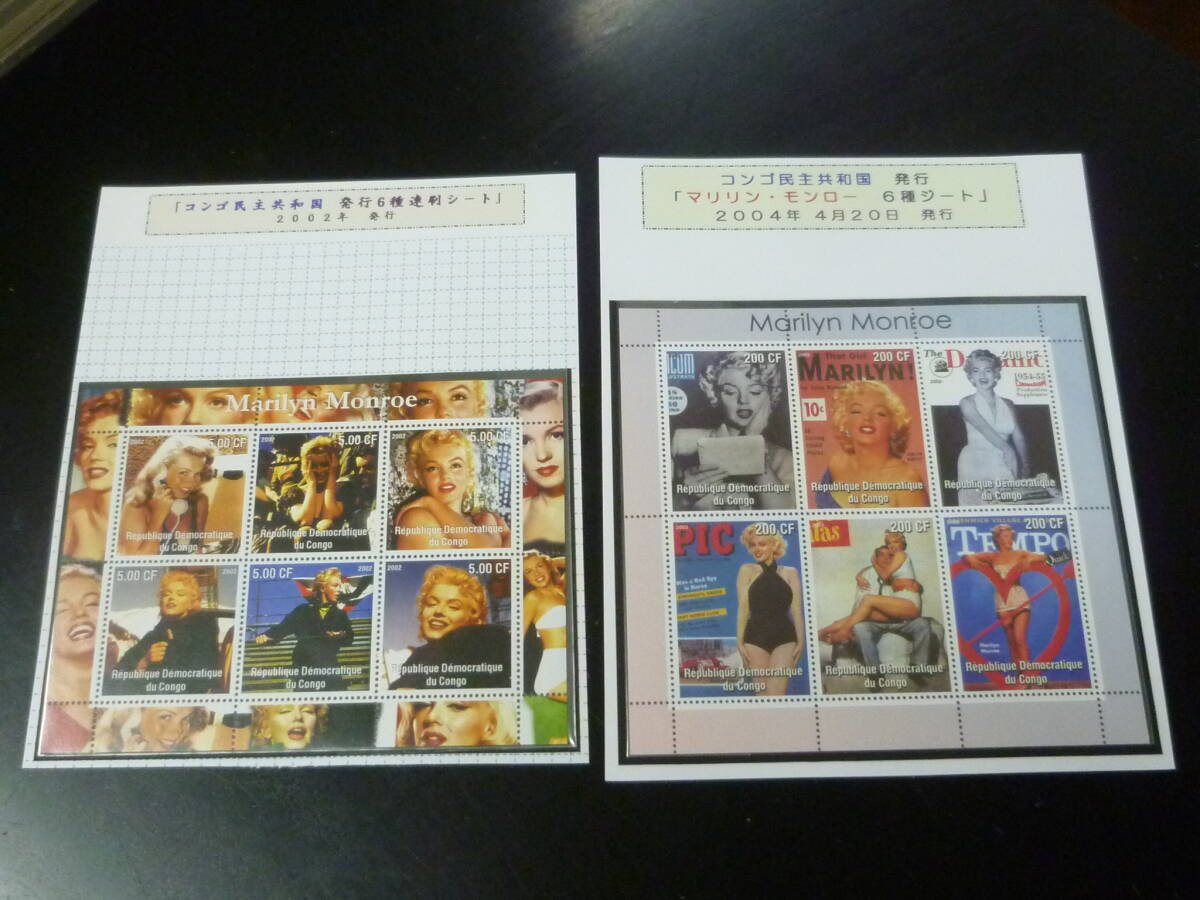 25SE M №1 マリリン・モンロー切手 1995-2002年 コンゴ・コートジボワールなど 5ヶ国 小型シート(金箔含)~9面シートレット 計16種