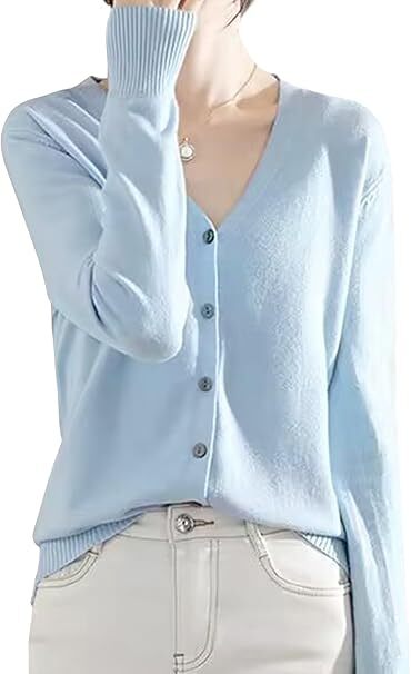 カーディガン レディース 春 ニット 無地 長袖 vネック XL