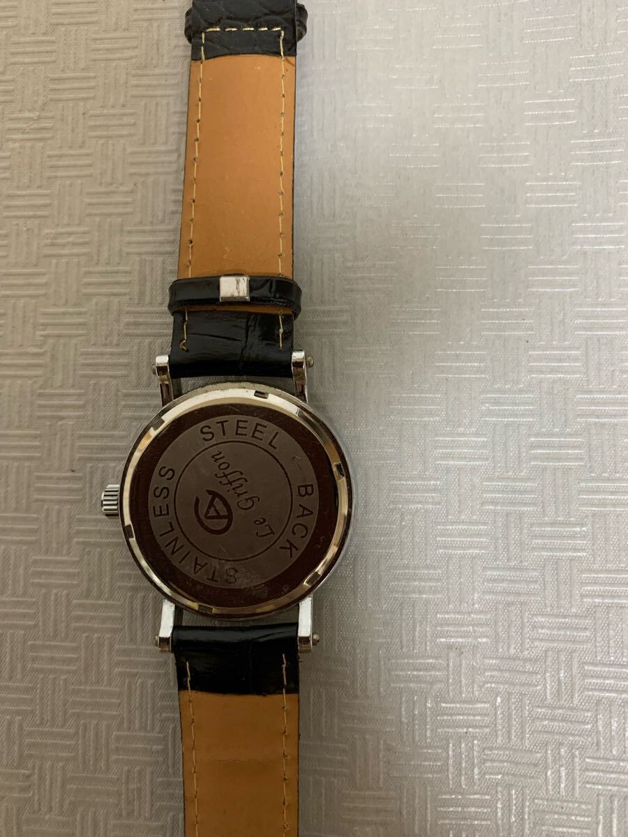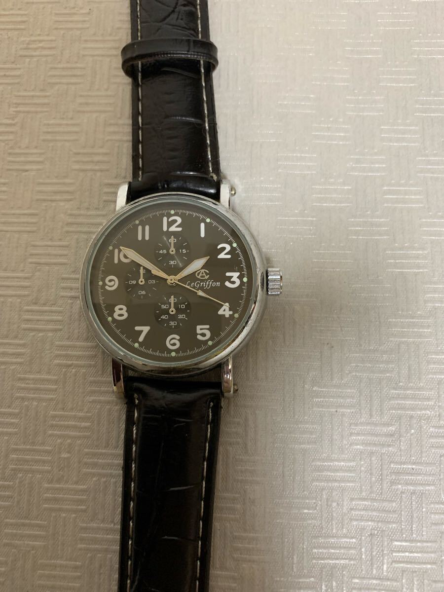 Le Griffon WATCH 腕時計/部品取り用/ブラック/クロノグラフ飾りデザイン/動作不動/ベルト使用不可ひび割れ等難/ジャンク