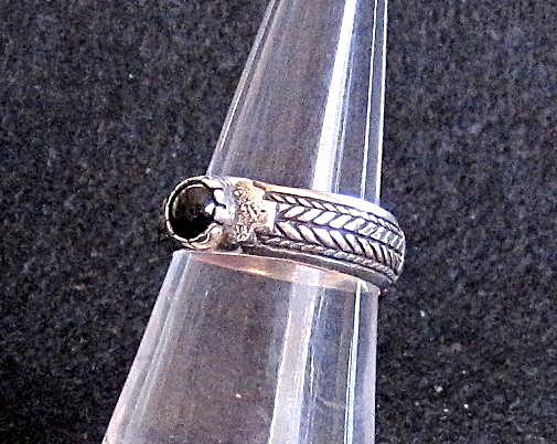 1980年代に 作られたナバホ族 ビンテージリング、、 ・「スタンプワーク」と 呼ばれるタガネ (鉄を削ったもの) でシルバーに模様を打ち込んで いく技法で製作、、、、、、 オニキスの意味 ;着実に目標を 実現するために 地に足を着けた 行動をするよう 導いてくれる石です、、、 成功の象徴とも 呼ばれています、、、 ■商品仕様 ナバホ族 SHUBE'S MFG. INC、 刻印(SHUBE'S) ステアリングシルバー刻印 &ブラックオニキス 【サイズ11号】 リング幅6.2mm 重さ4.9g Made in U.S.A .・送料込 ビンテージリングです、、、 ハンドメイドシルバー特有のスレ、 燻が御座います。 十分にご検討の上、 ご決断をお願いします。 | ||||