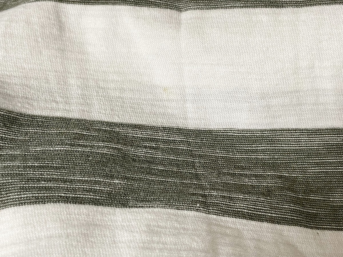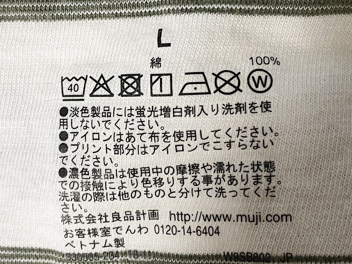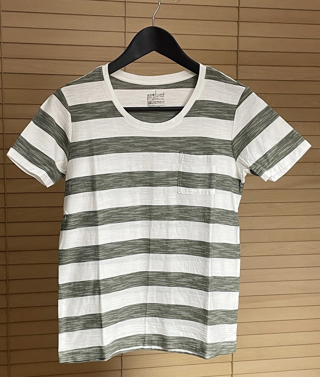 【激安1点のみ 国内正規品】無印良品 MUJl 天竺編み 胸ポケット ボーダー クルーネック 半袖 Tシャツ L ホワイト×グレーがかったカーキ系