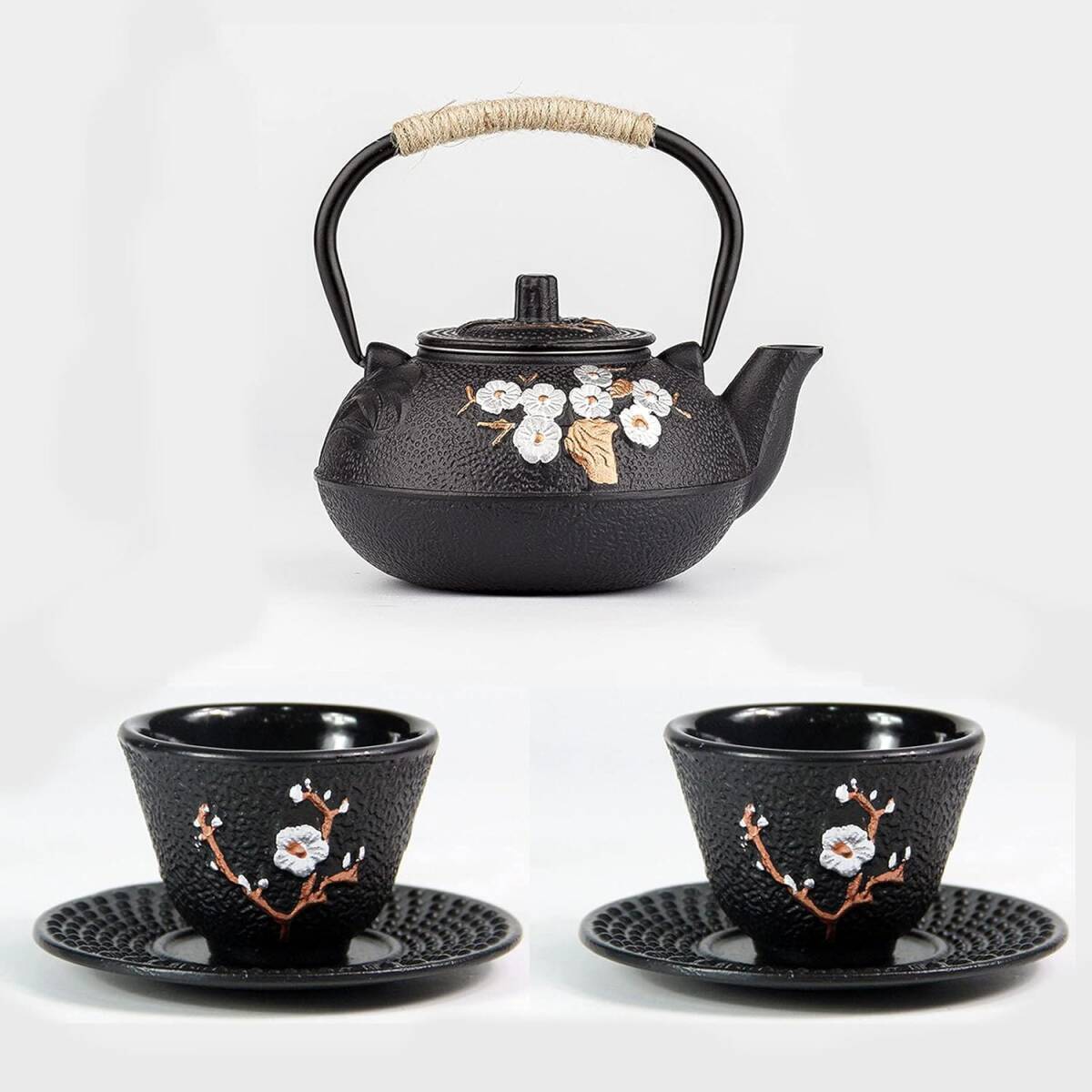 南部鉄器 急須 鉄瓶 鉄器 鉄のやかん 鋳鉄 お茶用沸騰水 鉄ティーポット 茶道具 鉄分補給 直火 ih対応 統工芸品 (カップ付き, 600ML)
