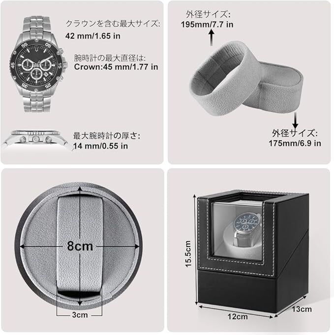 ワインディングマシーン 1本巻き ウォッチワインダー 自動巻き時計ワインディングマシーン 新型の腕時計自動巻き上げ機 ブラック