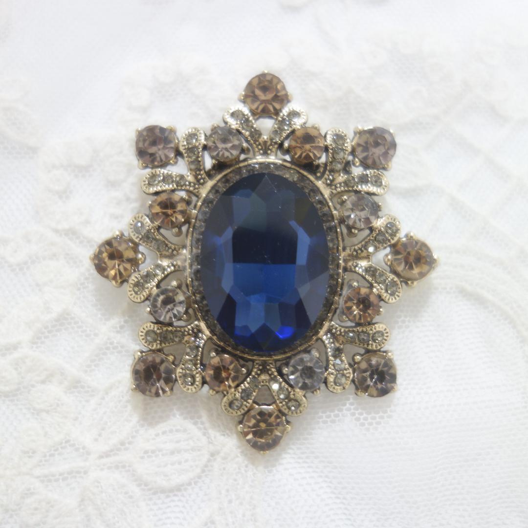 オーバル形のシックなサファイア色/紺色のラインストーンが