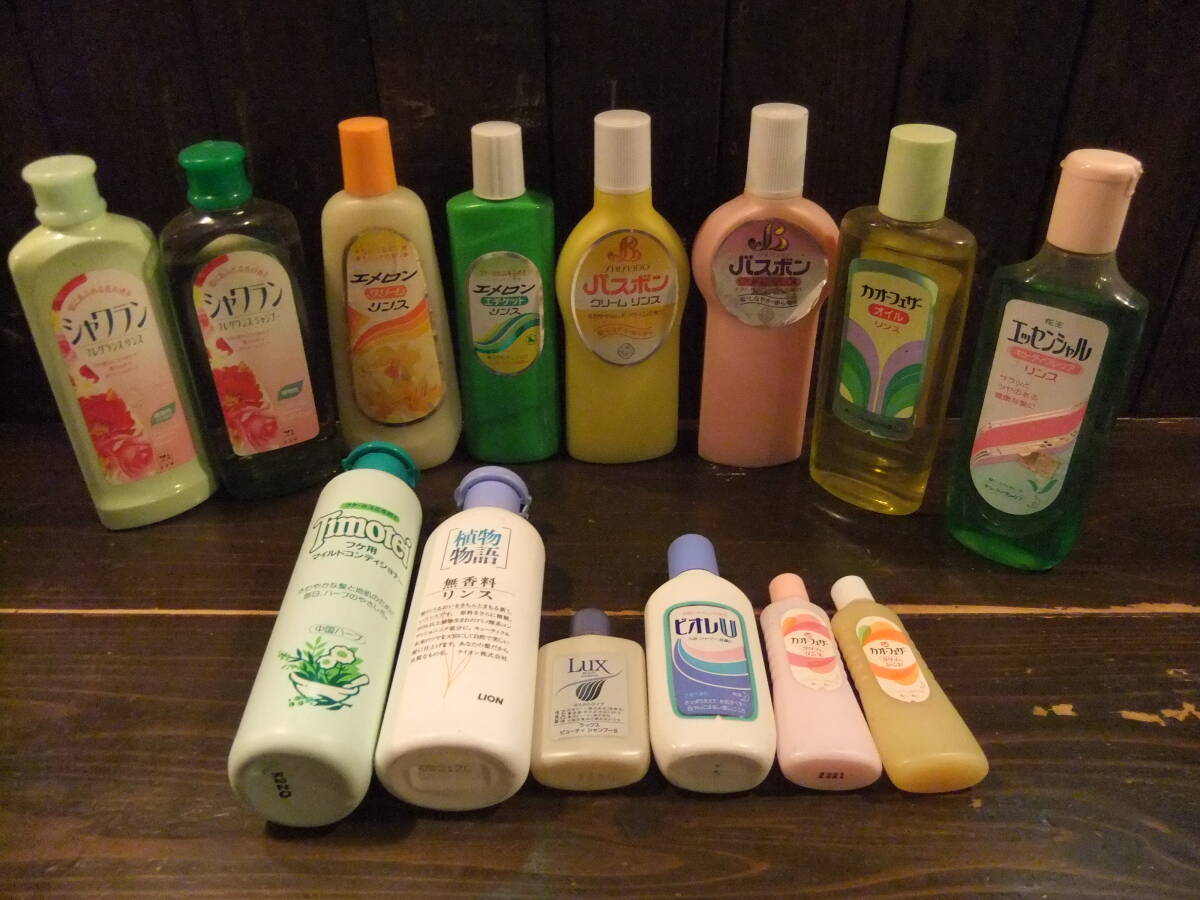 昭和 レトロ ビンテージ シャンプー リンス 14本 雑貨 ディスプレイ 資料 当時もの 博物館 展示物 歯磨き粉 パッケージ 容器