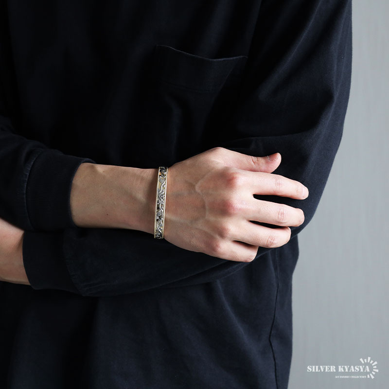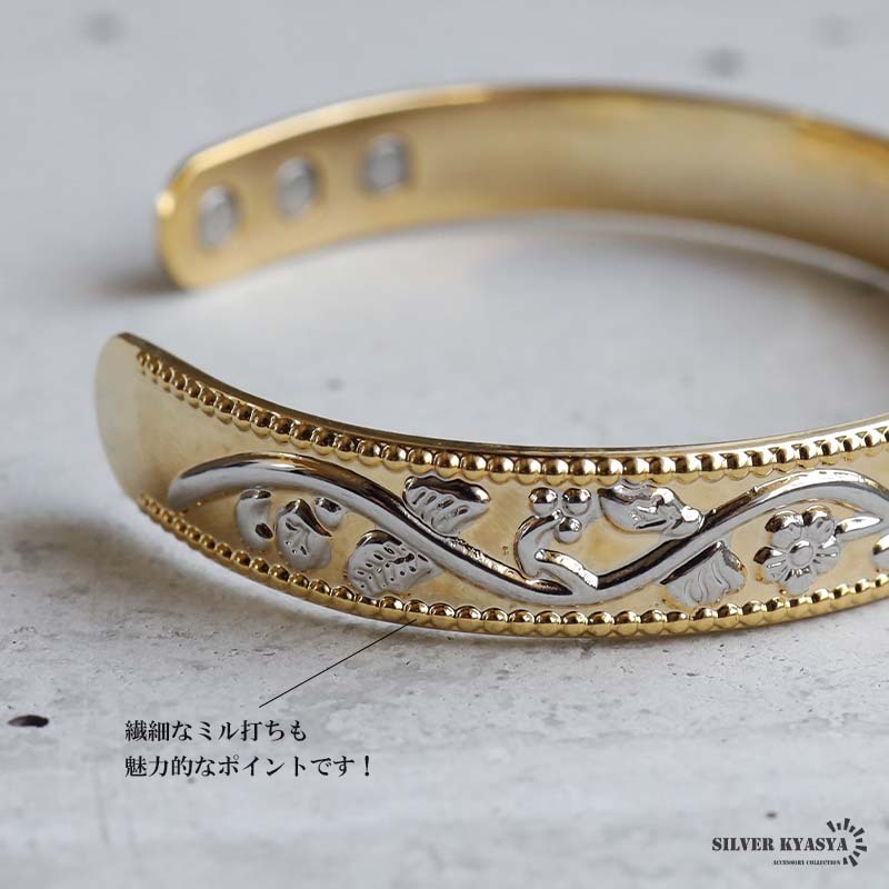 磁気バングル ハワイアンバングル フラワーバングル ゴールドバングル シルバー ブレスレット 腕輪 花 磁石 メンズ 男性