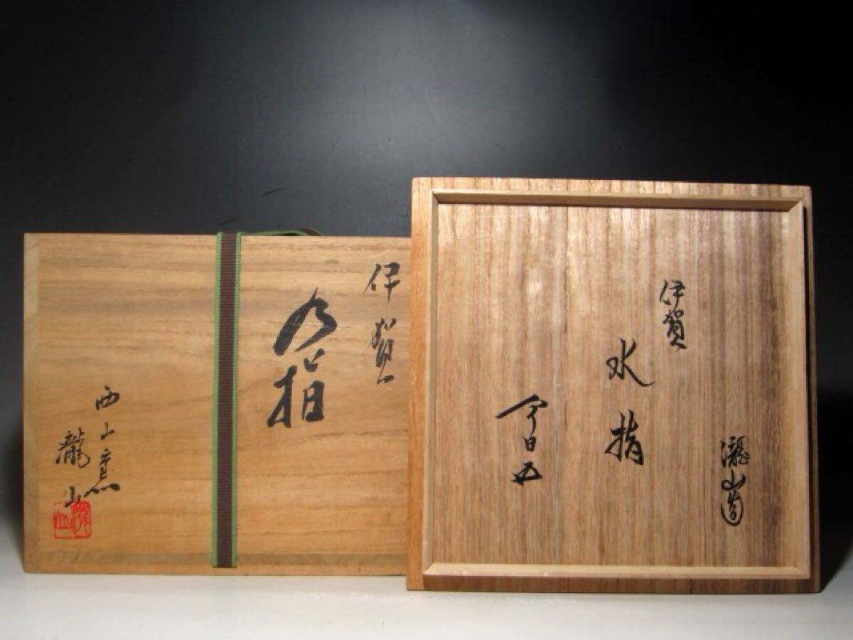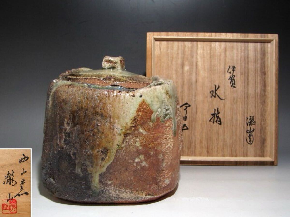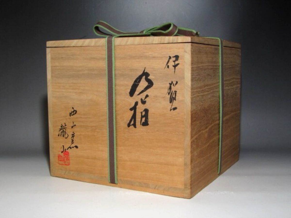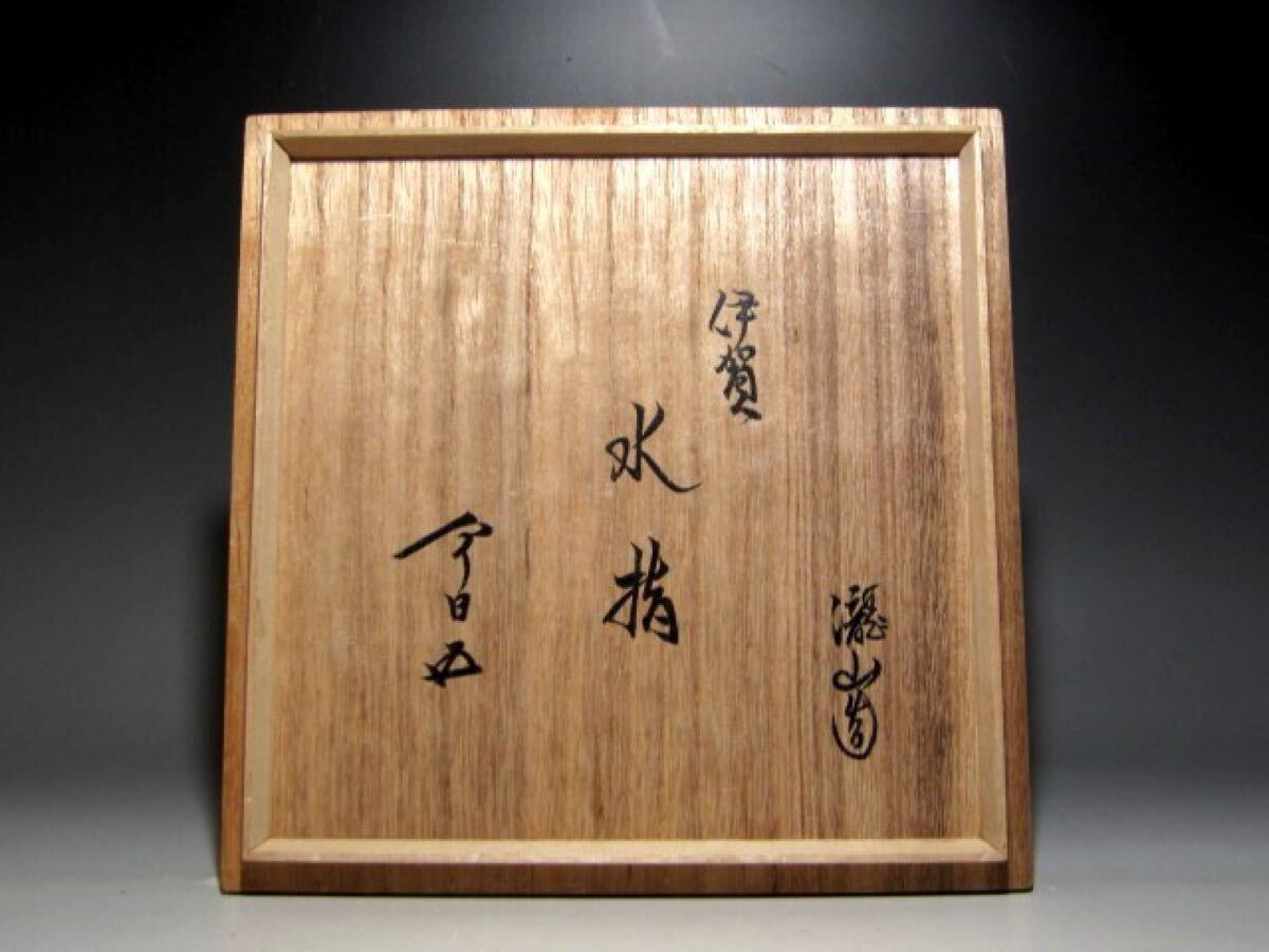 坂本瀧山作の伊賀水指です。 趣ある姿の素晴らしいお品です。 箱蓋裏に裏千家十五世鵬雲斎の花押があります。 サイズ 直径20cm/高さ18.5cm(多少の誤差はお許しください) 状態 一見して疵やヒビ・直しは見られません。 骨董品という事をご勘案頂き、時代経過のスレや、小さな傷がある場合があるかもしれませんのでご承知置きください。 | |||