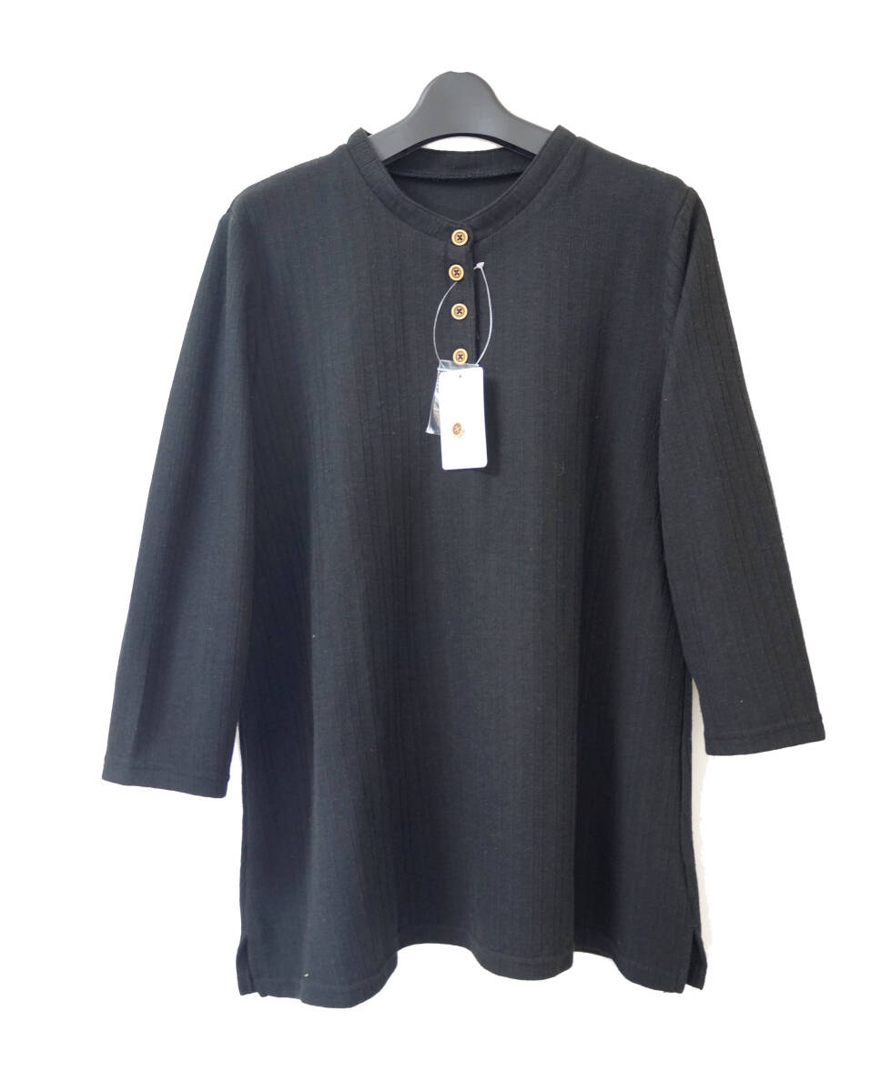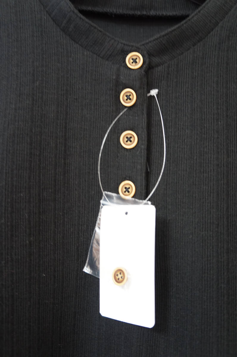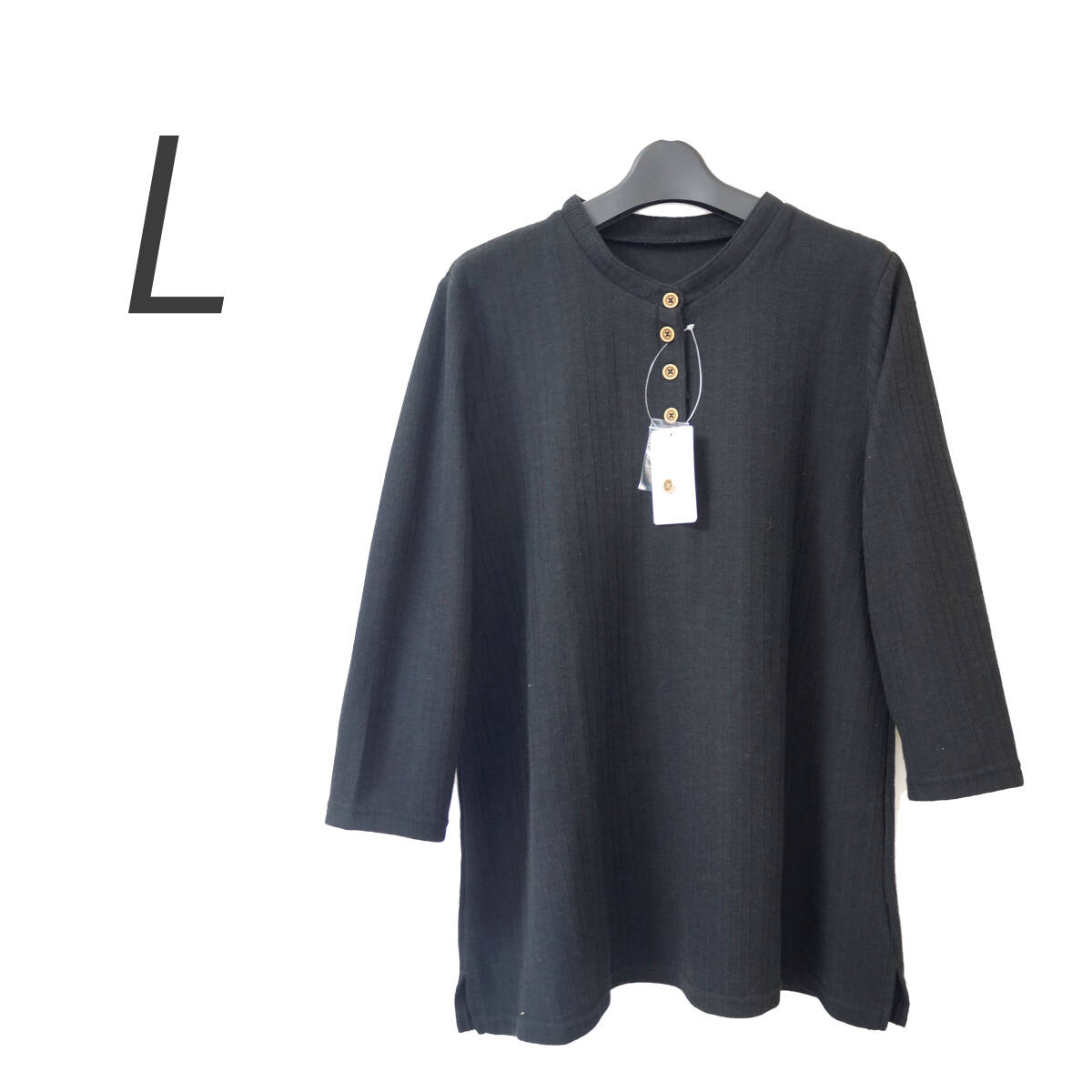 ●新品/ヘンリーネック/トップス/リブ/黒系/L/無地/レディース●x0003