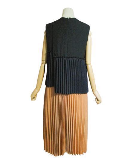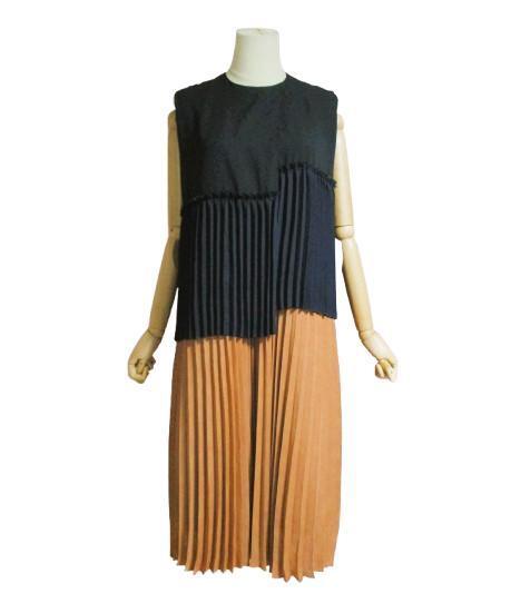 構築的なプリーツ使いがモダンな印象のワンピース