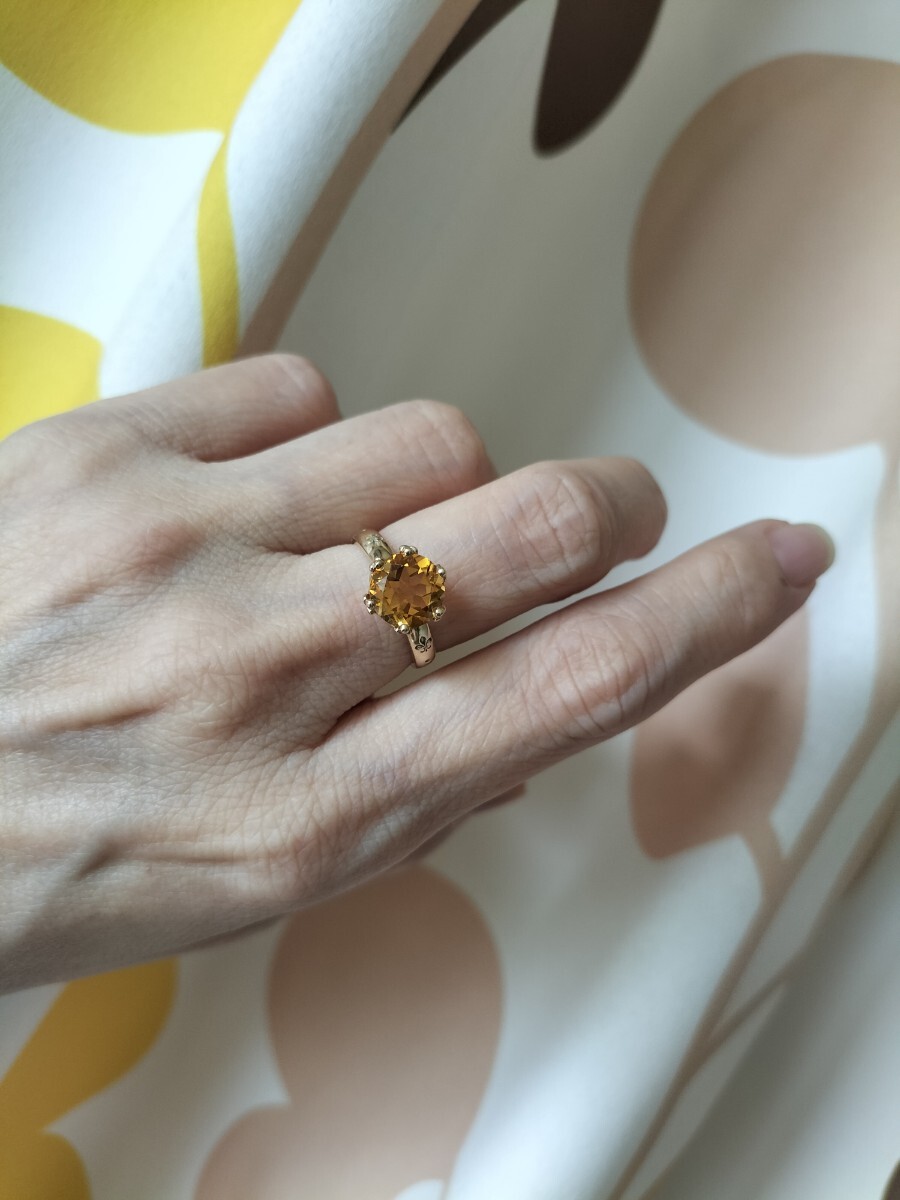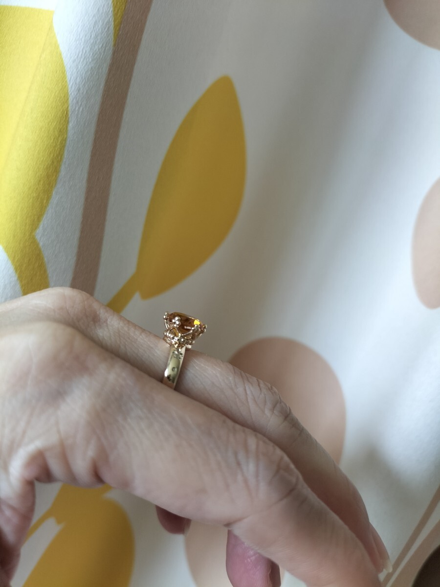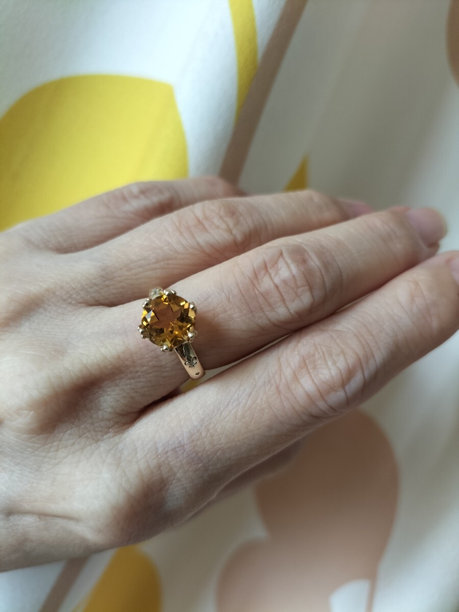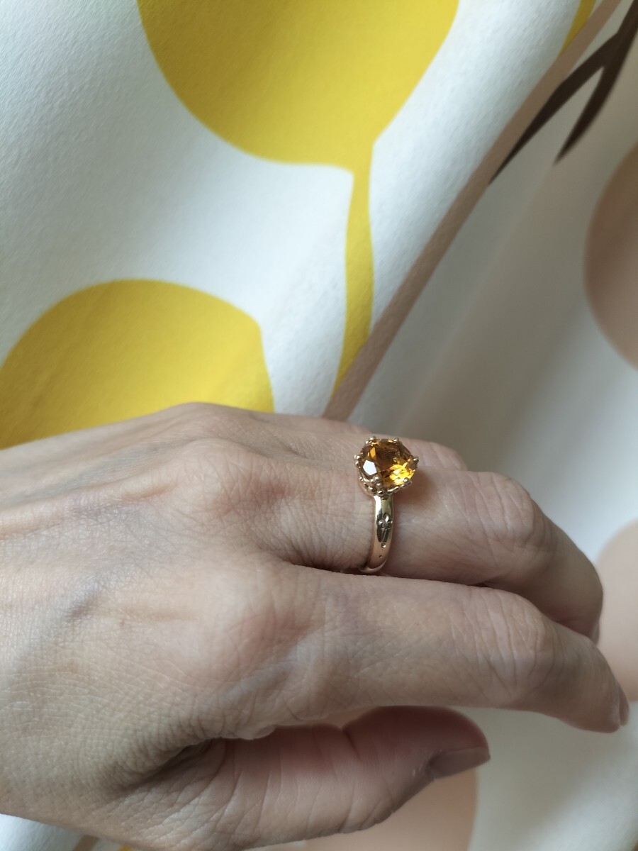 一粒シトリンだけのリングでシンプル。シトリンは透明感があり綺麗な石です。