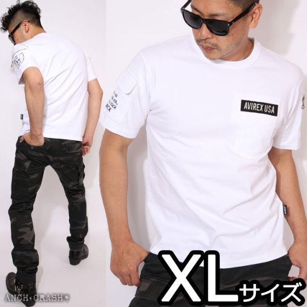 AVIREX アビレックス ファティーグ 半袖 Tシャツ ホワイト【XLサイズ 】6113328 クルーネック ポケット ミリタリー