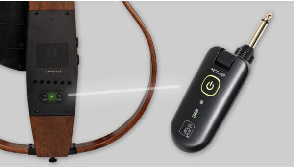 付属のワイヤレスレシーバーを使って、無線でアンプ等に接続して演奏できます。