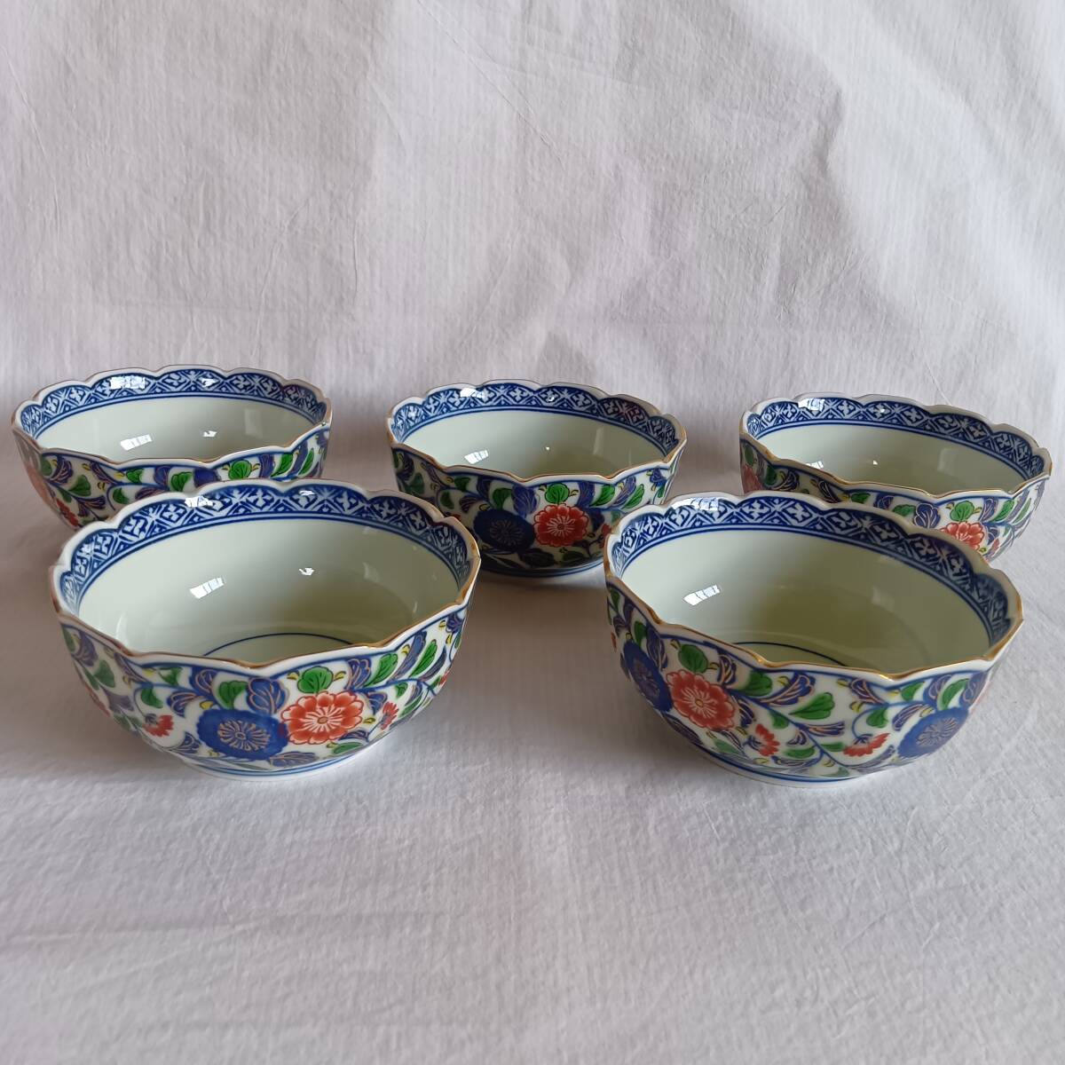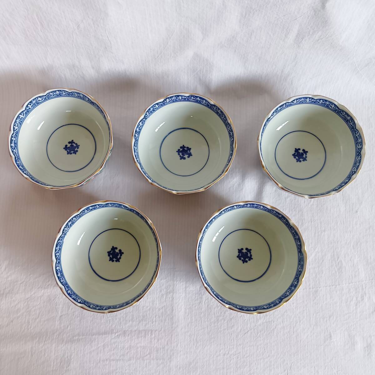 ■【未使用】有田焼 小鉢 小鉢揃5客セット 青 胡窯 木箱入り