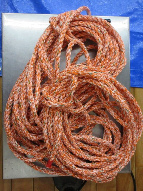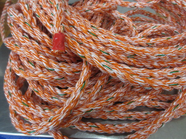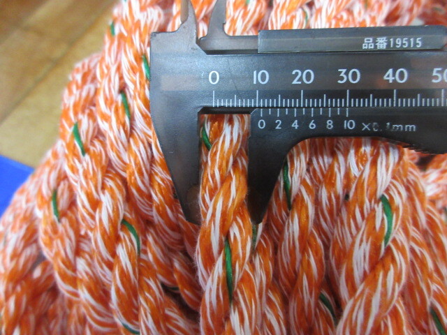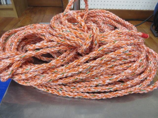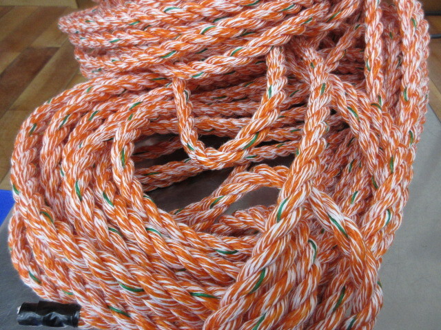 大特価!新品・国産★橙色・白・緑入り/混撚(KP) 三つ打ちロープ★