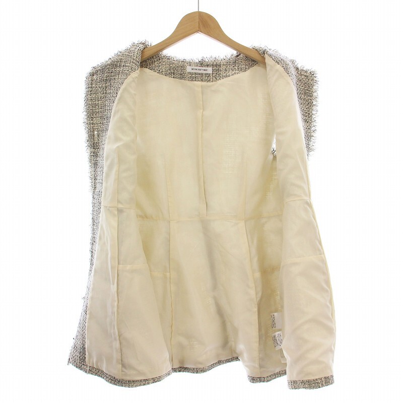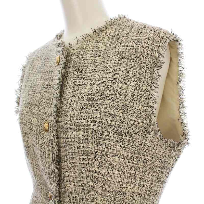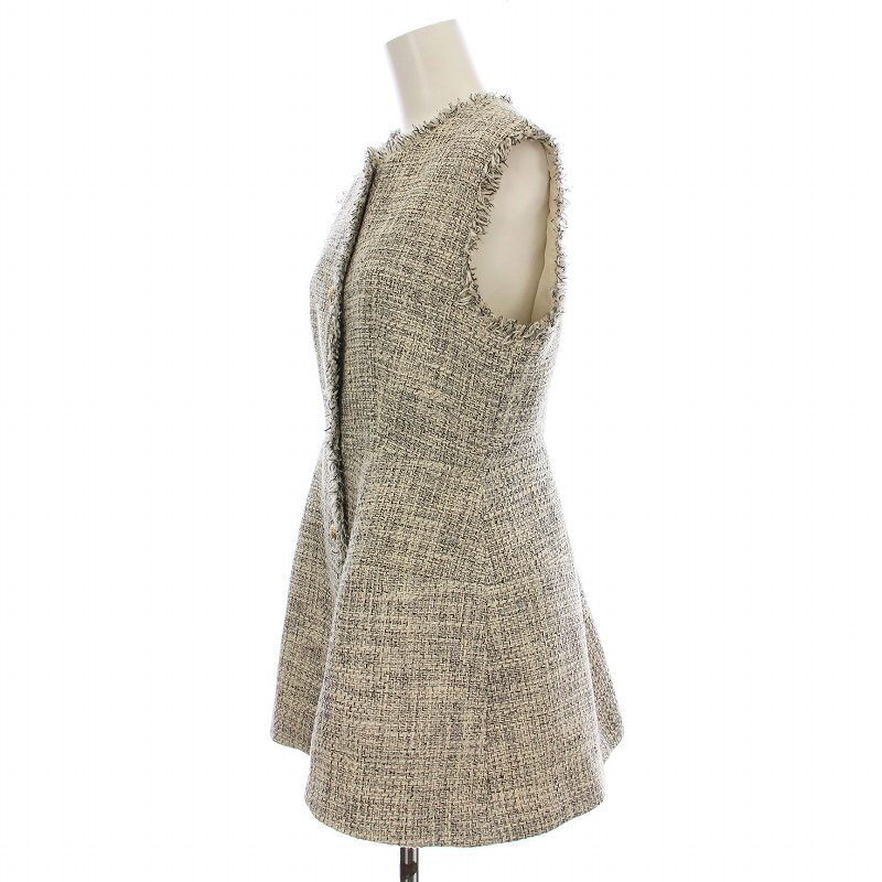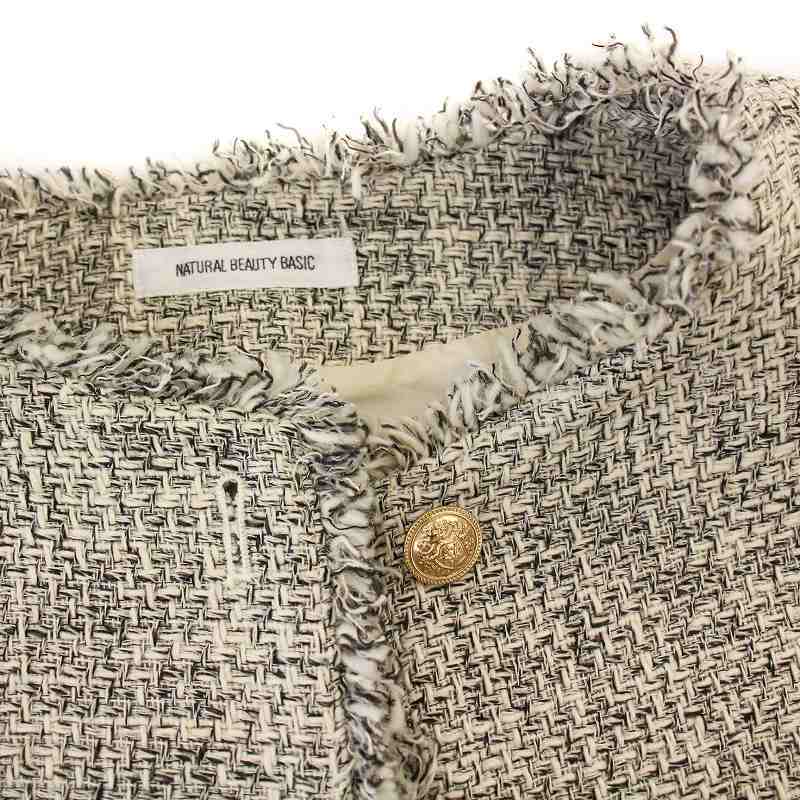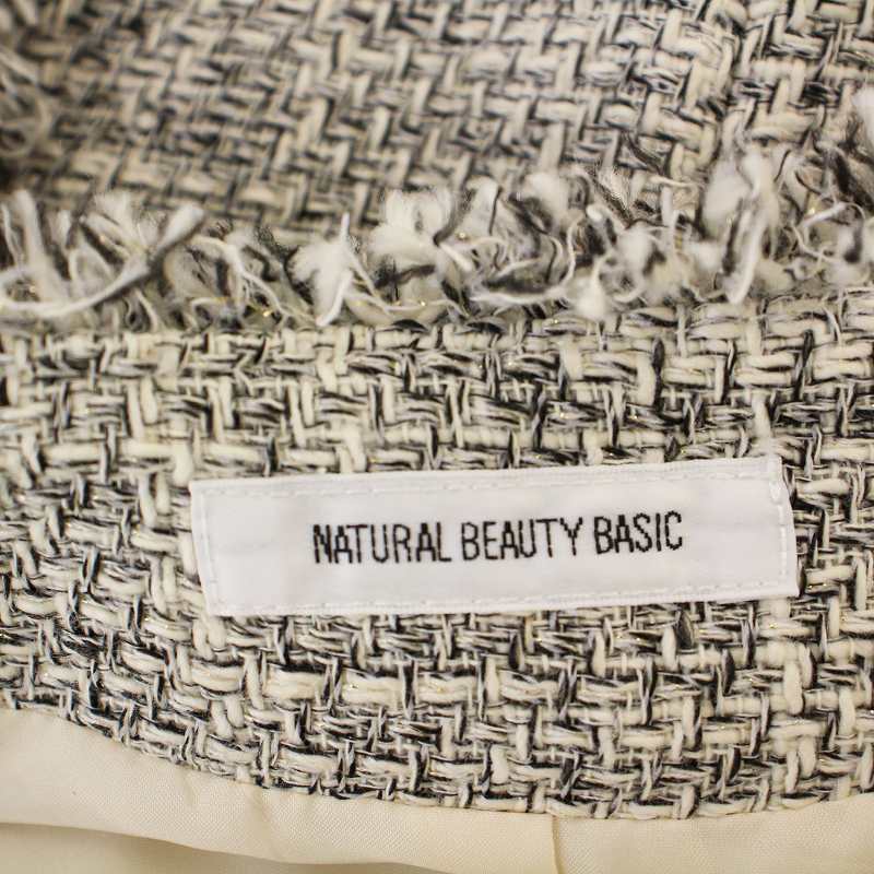 ナチュラルビューティー NATURAL BEAUTY BASIC スプリングツイードペプラムジレ カットオフ ベスト S 白 黒