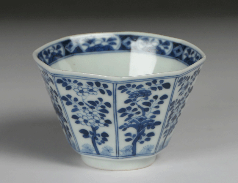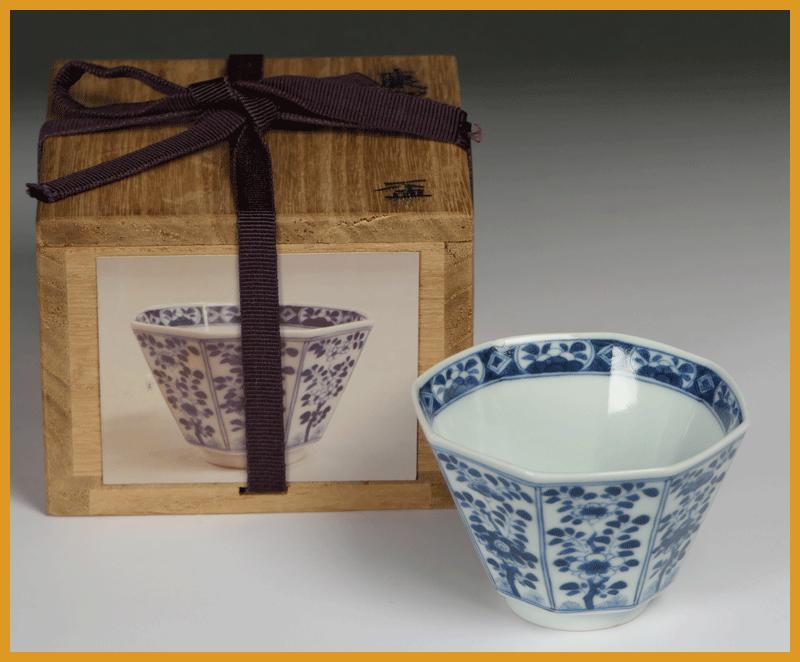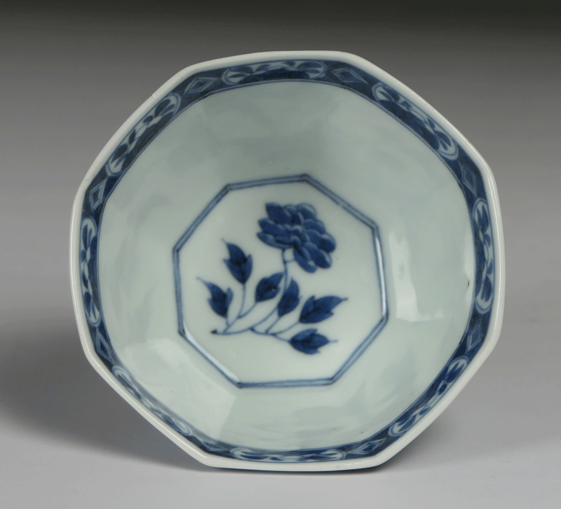 ★名品酒器 【 清代染付花文八角杯 】 盃 ぐい呑み 青花 中國陶瓷 中国陶磁 民芸 民藝 柳宗悦 古美術 波兎 骨董 ★