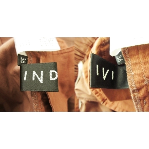 インディヴィ INDIVI パンツ スラックス フレア ブーツカット 麻混 リネン混 ストレッチ バックゴム 36 茶 ブラウン /AH1 レディース