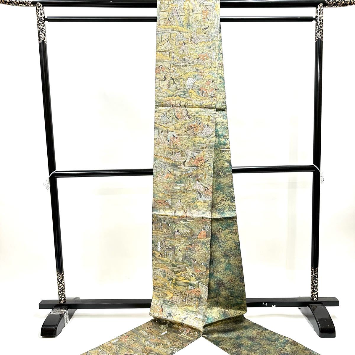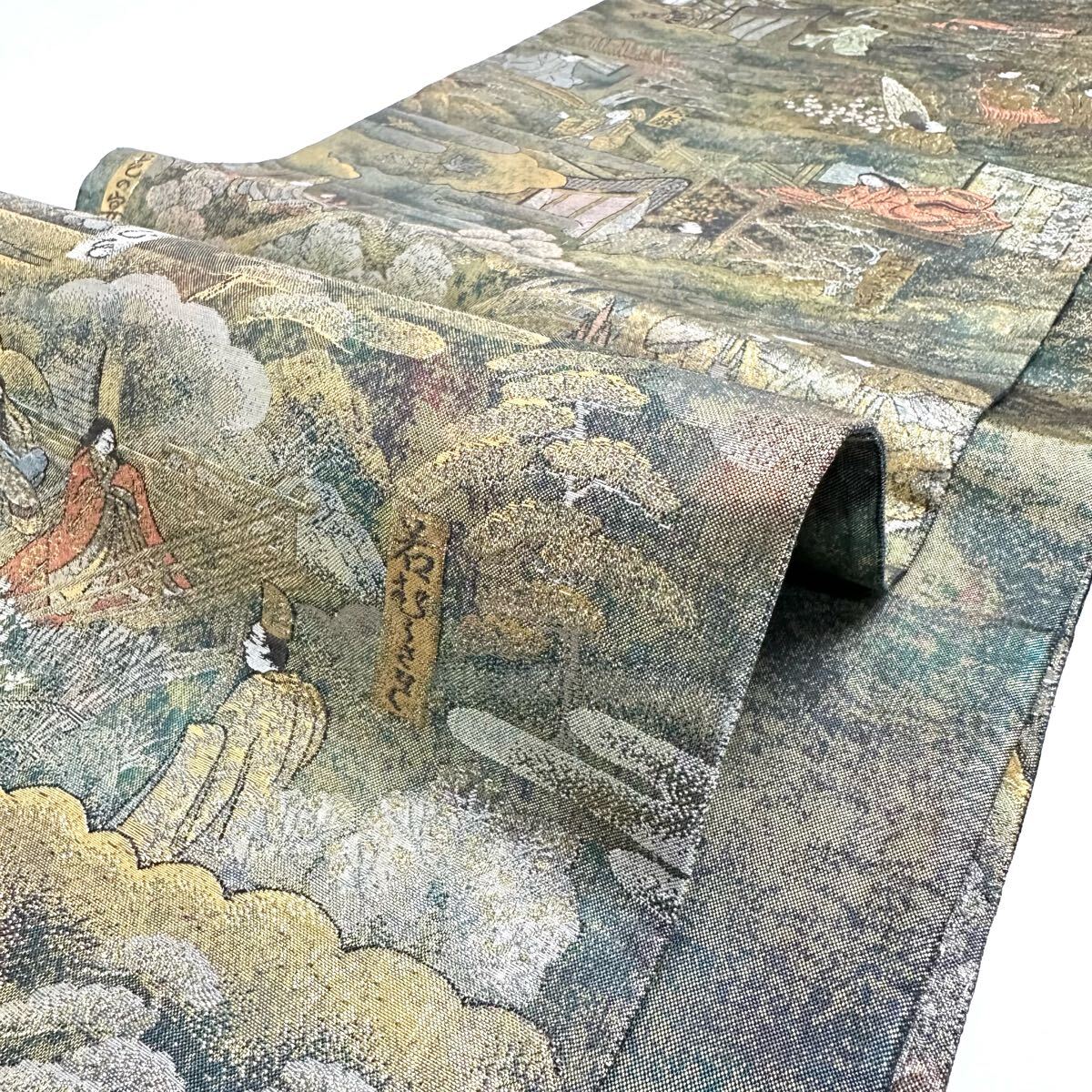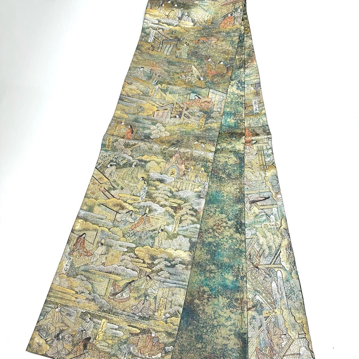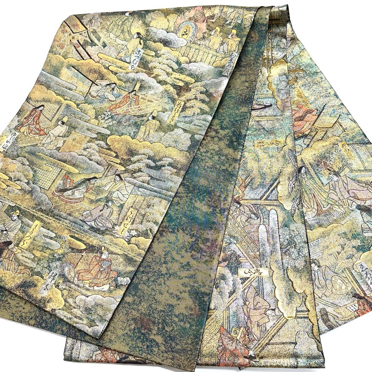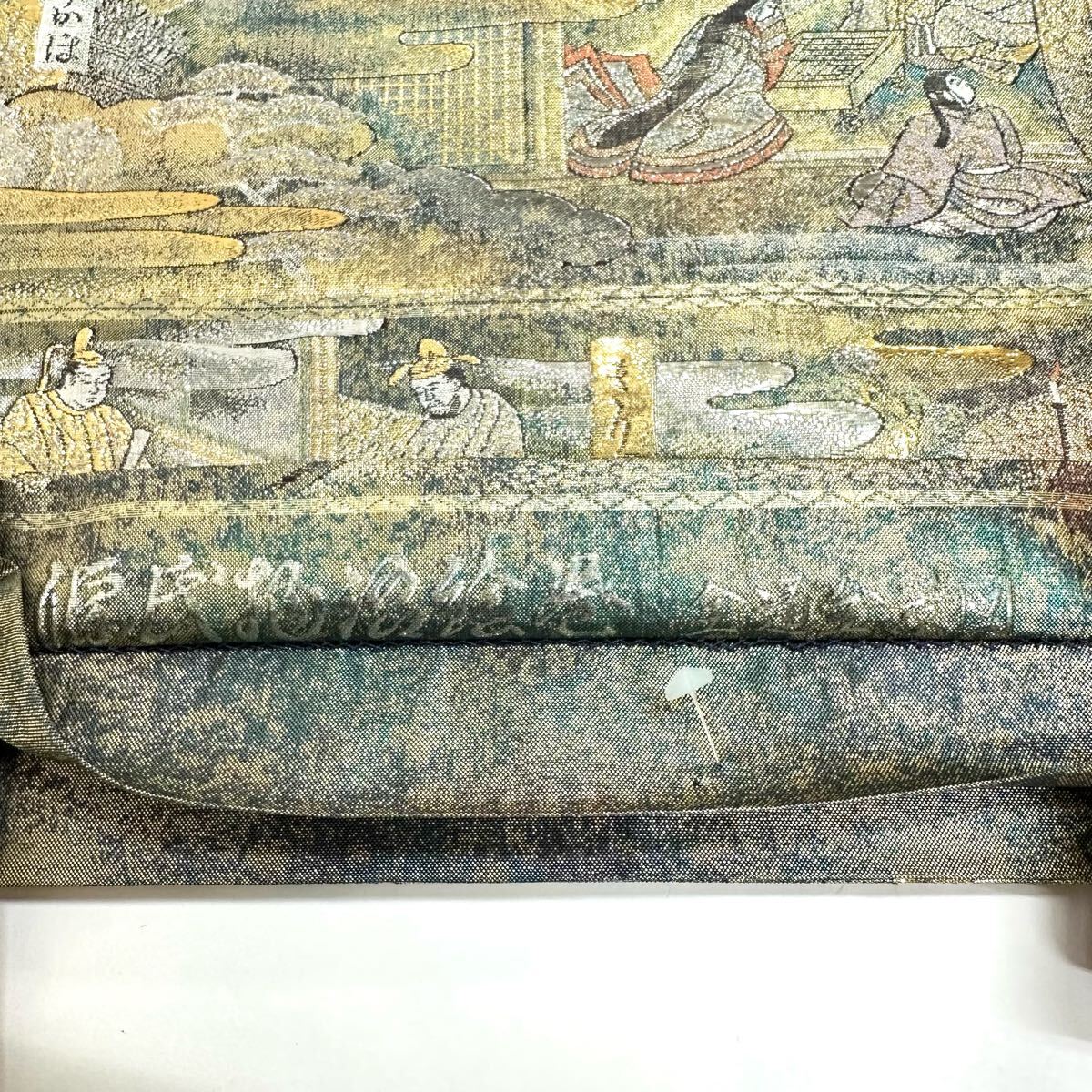 【七福】c551 逸品 高級品 正絹 袋帯 全通 源氏物語絵巻 全通全景図 金糸 銀糸 箔 豪華