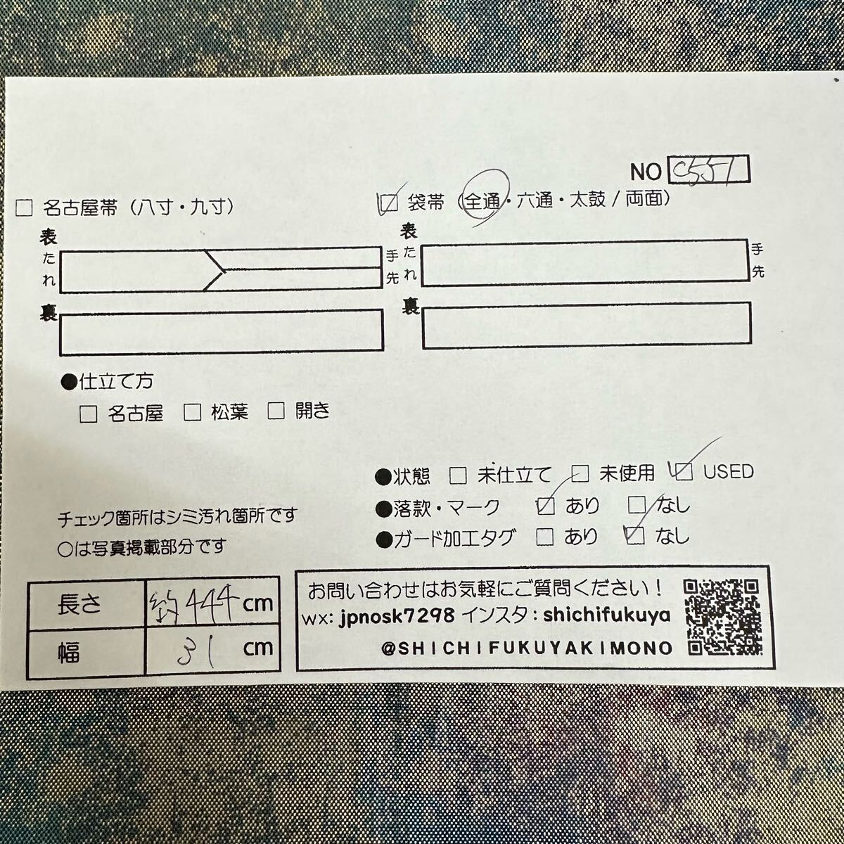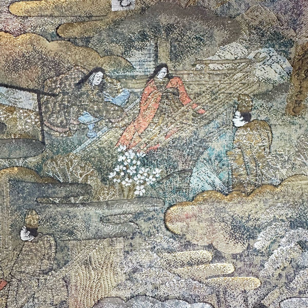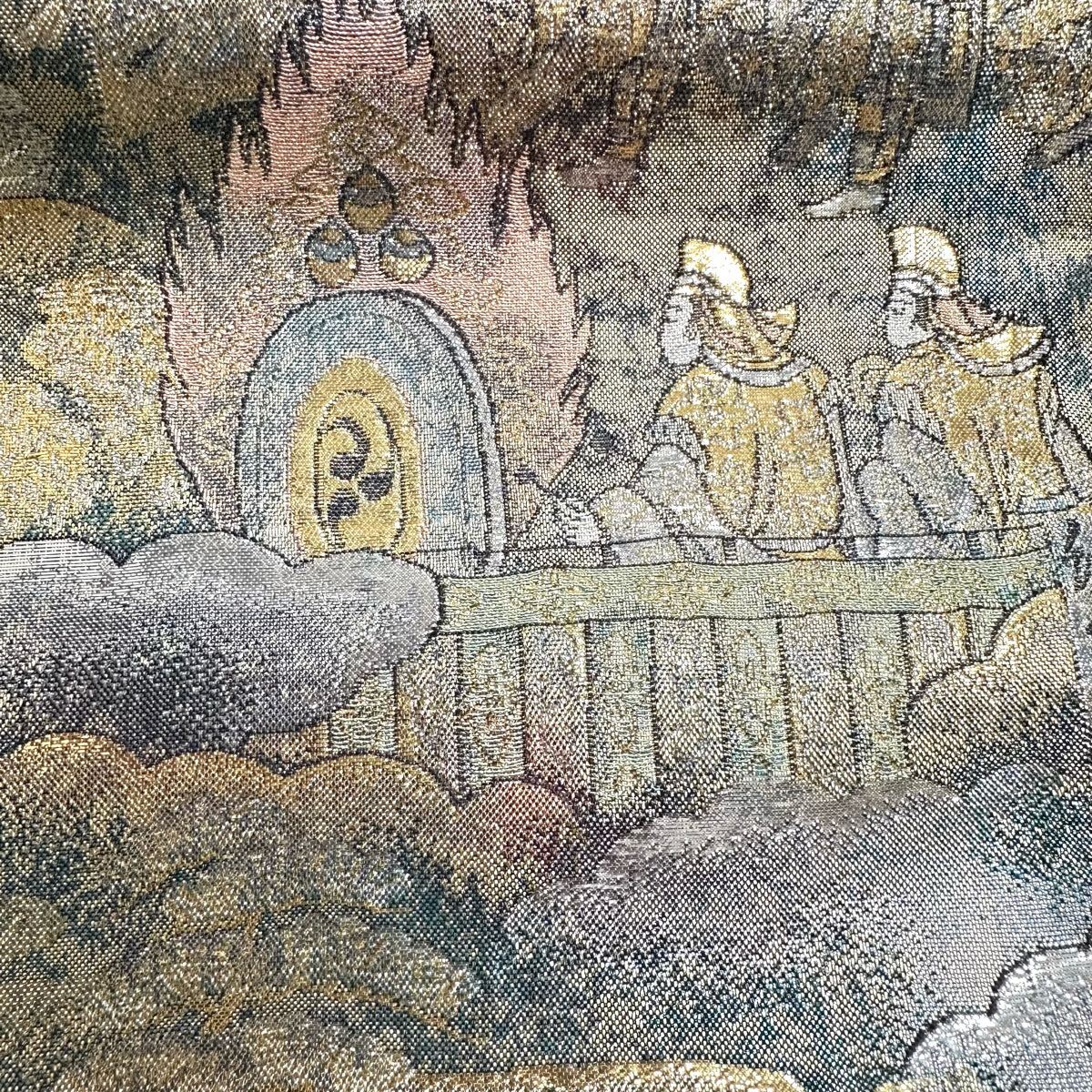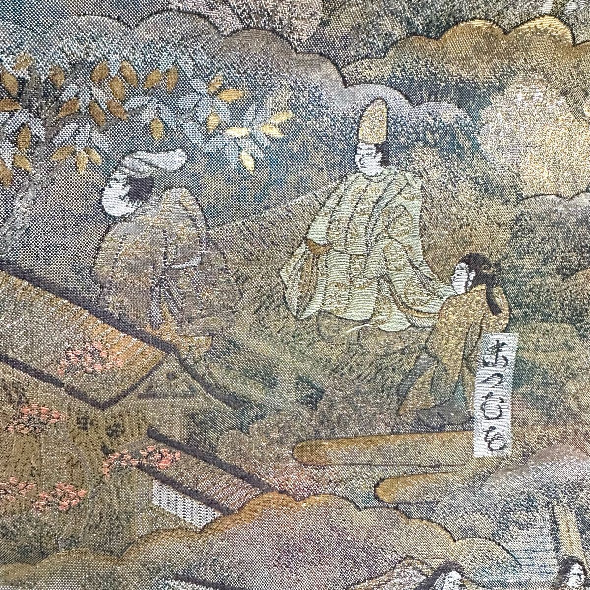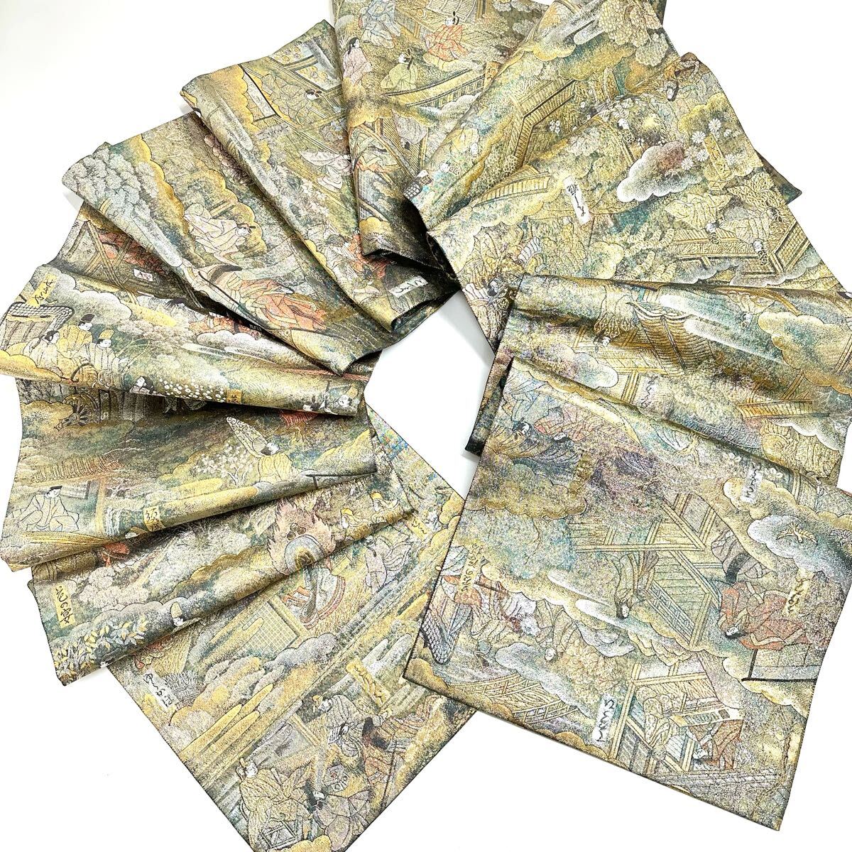 【七福】c551 逸品 高級品 正絹 袋帯 全通 源氏物語絵巻 全通全景図 金糸 銀糸 箔 豪華