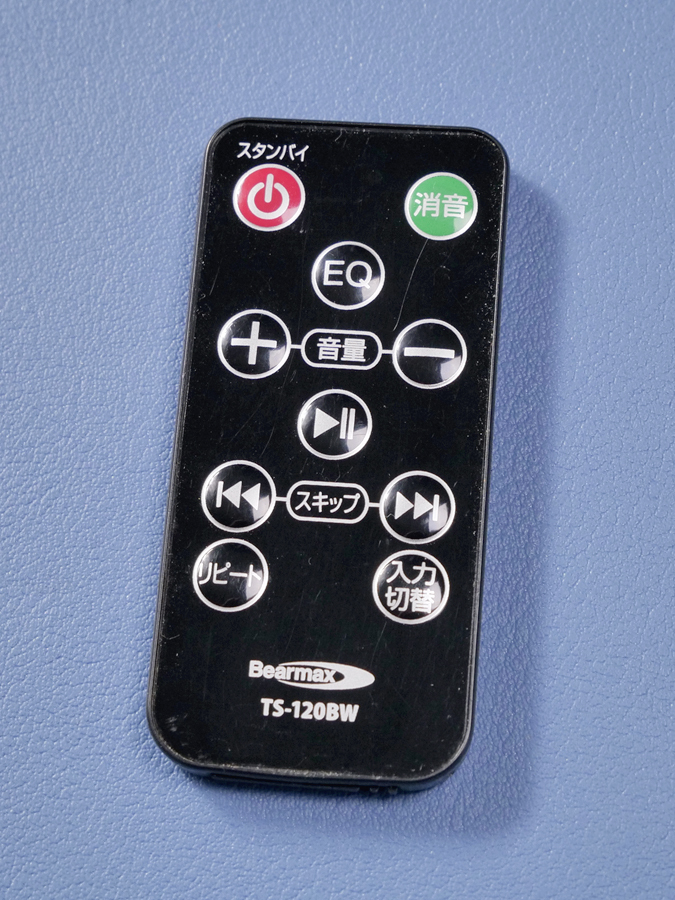 Bearmaxのアンプ内蔵タワースピーカー TS-120BW用リモコンの中古品です。